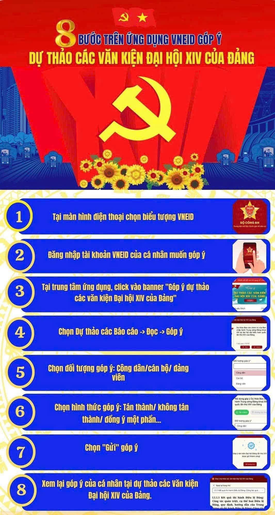 8 BƯỚC TRÊN ỨNG DỤNG VNEID GÓP Ý DỰ THẢO CÁC VĂN KIỆN ĐẠI HỘI XIV CỦA ĐẢNG