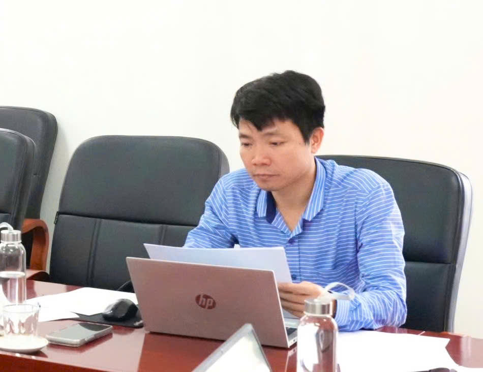Trưởng Phòng Kinh tế - Hạ tầng và Đô thị  Lương Đức Tuyến trình bày báo cáo tại cuộc họp
