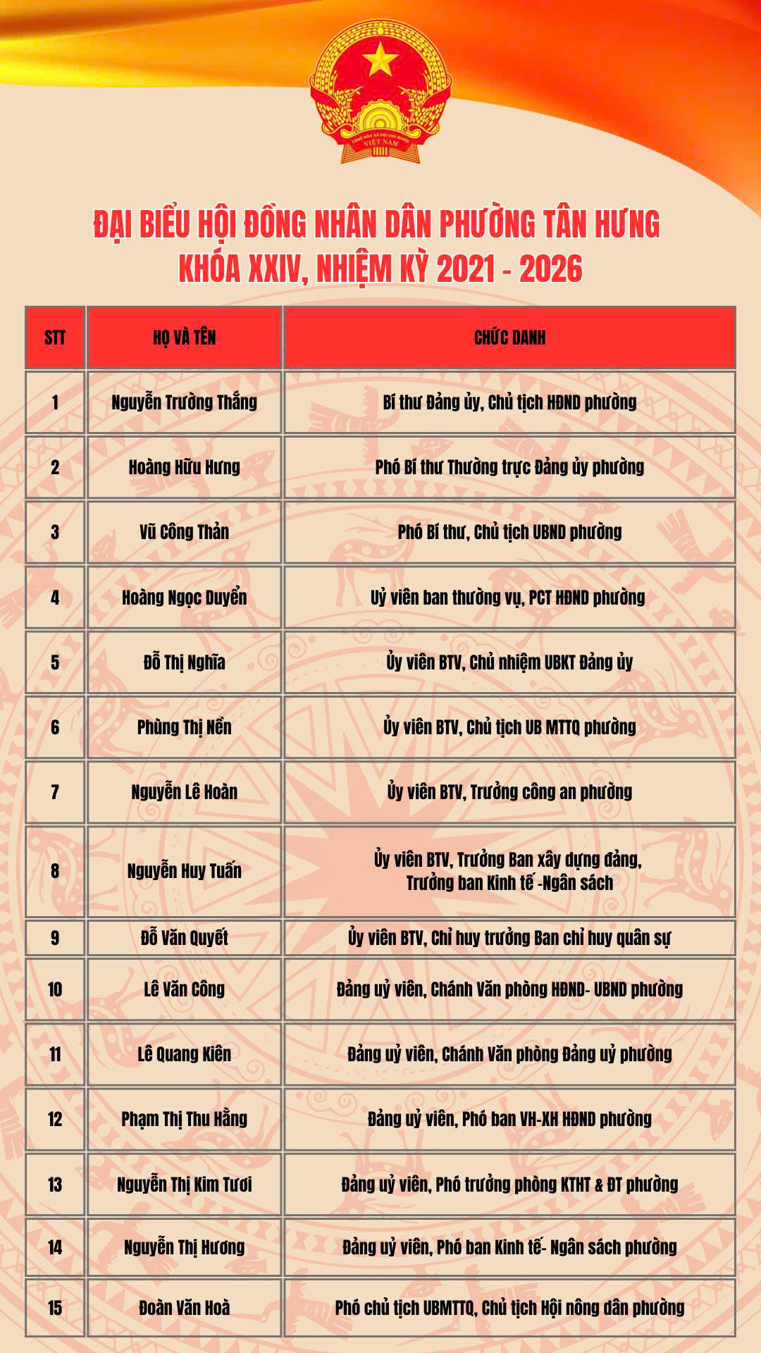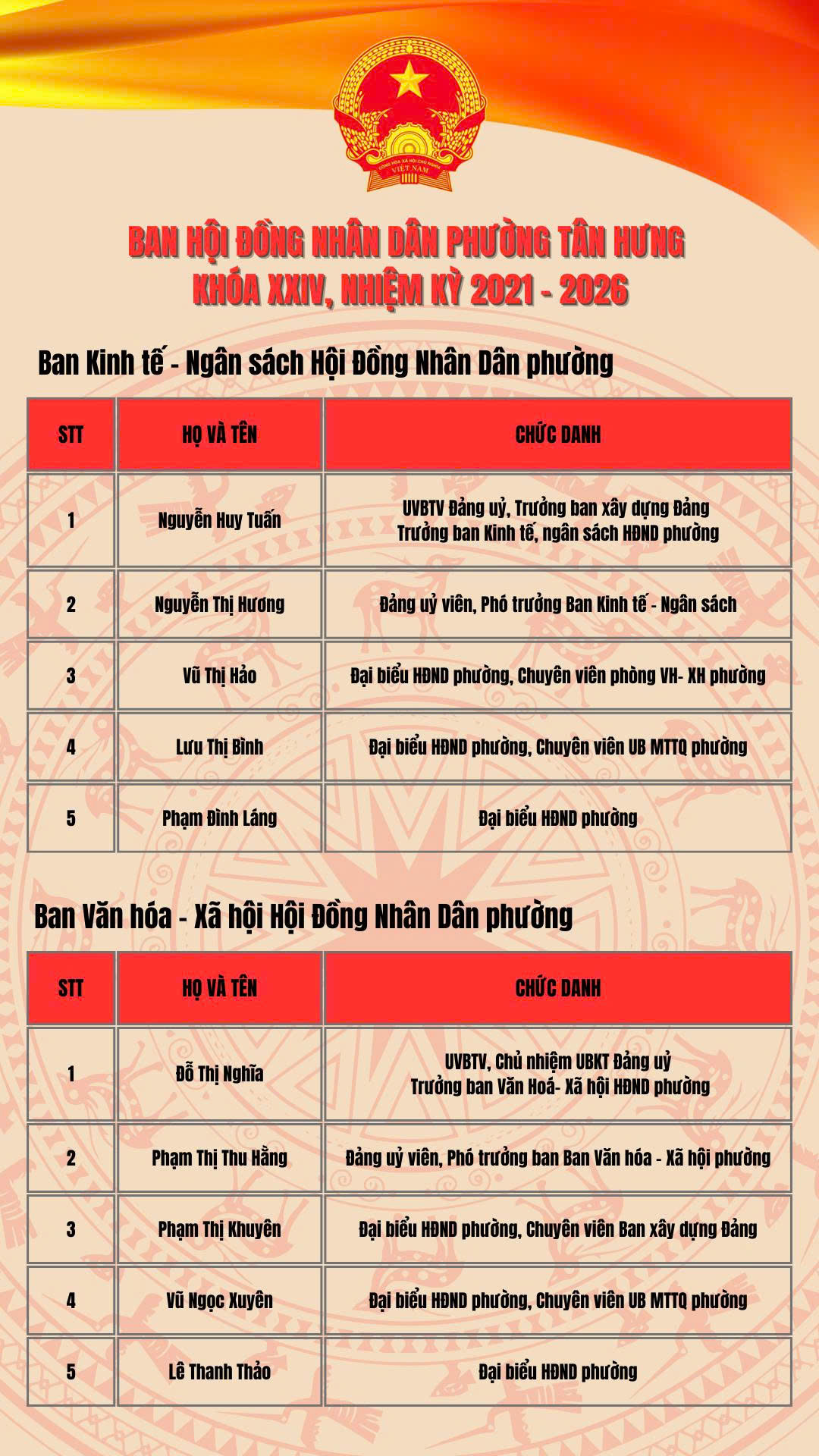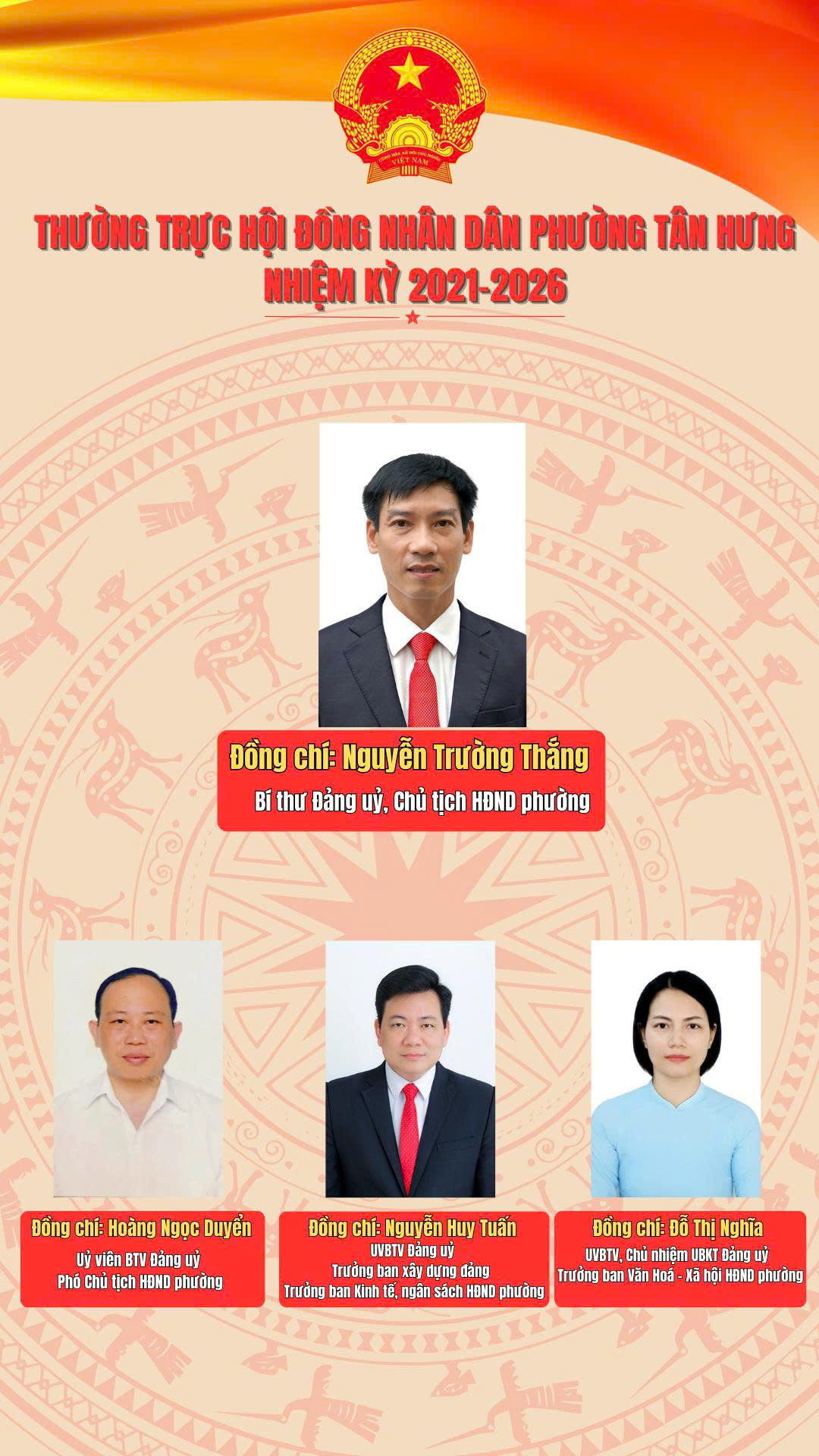 Thường trực Hội đồng nhân dân phường Tân Hưng nhiệm kỳ 2021-2026