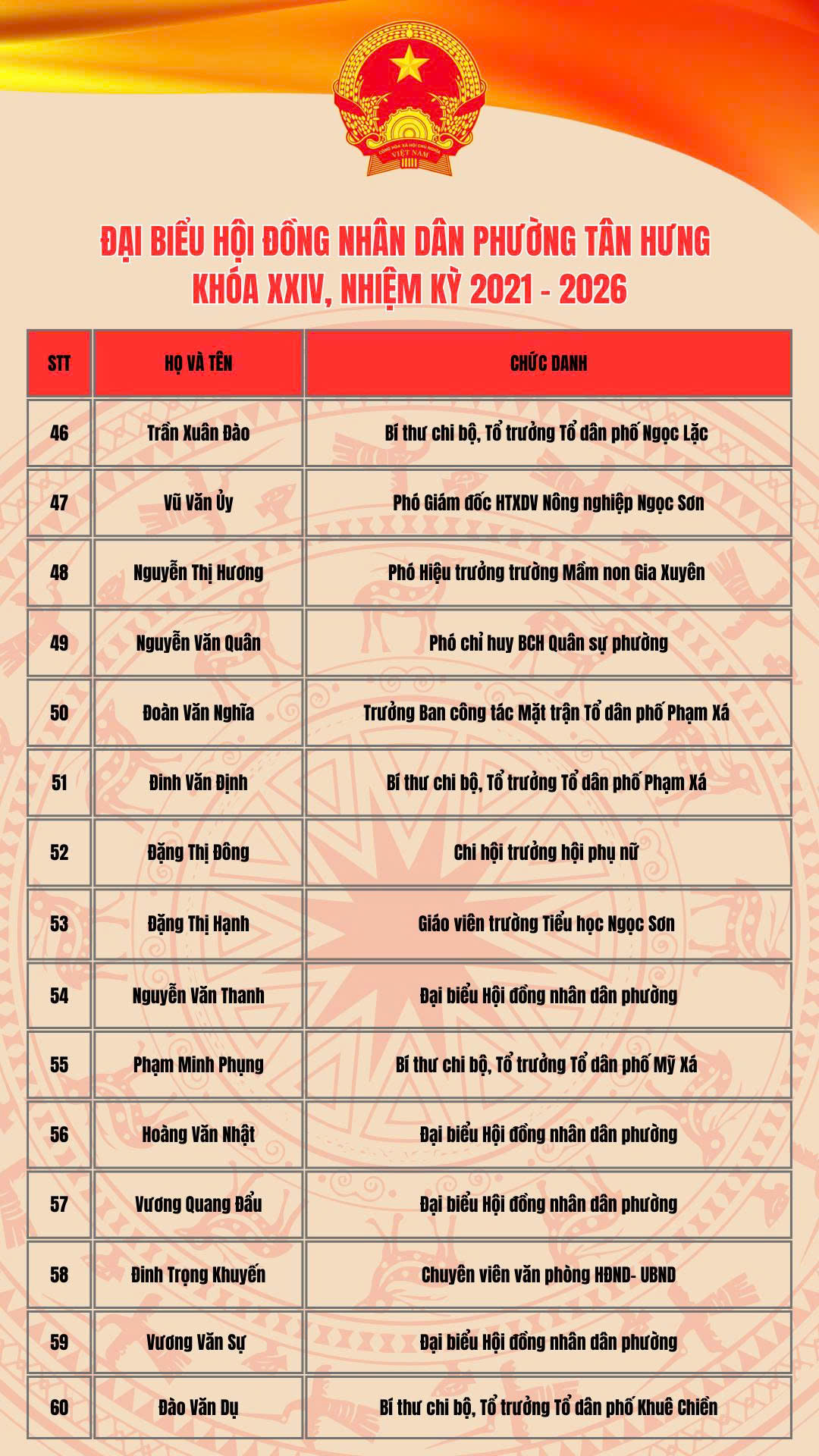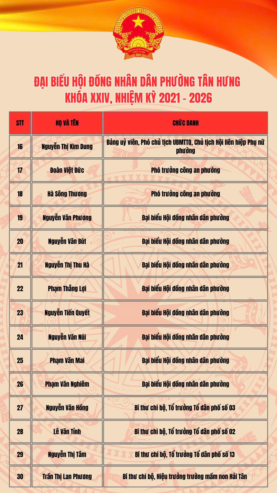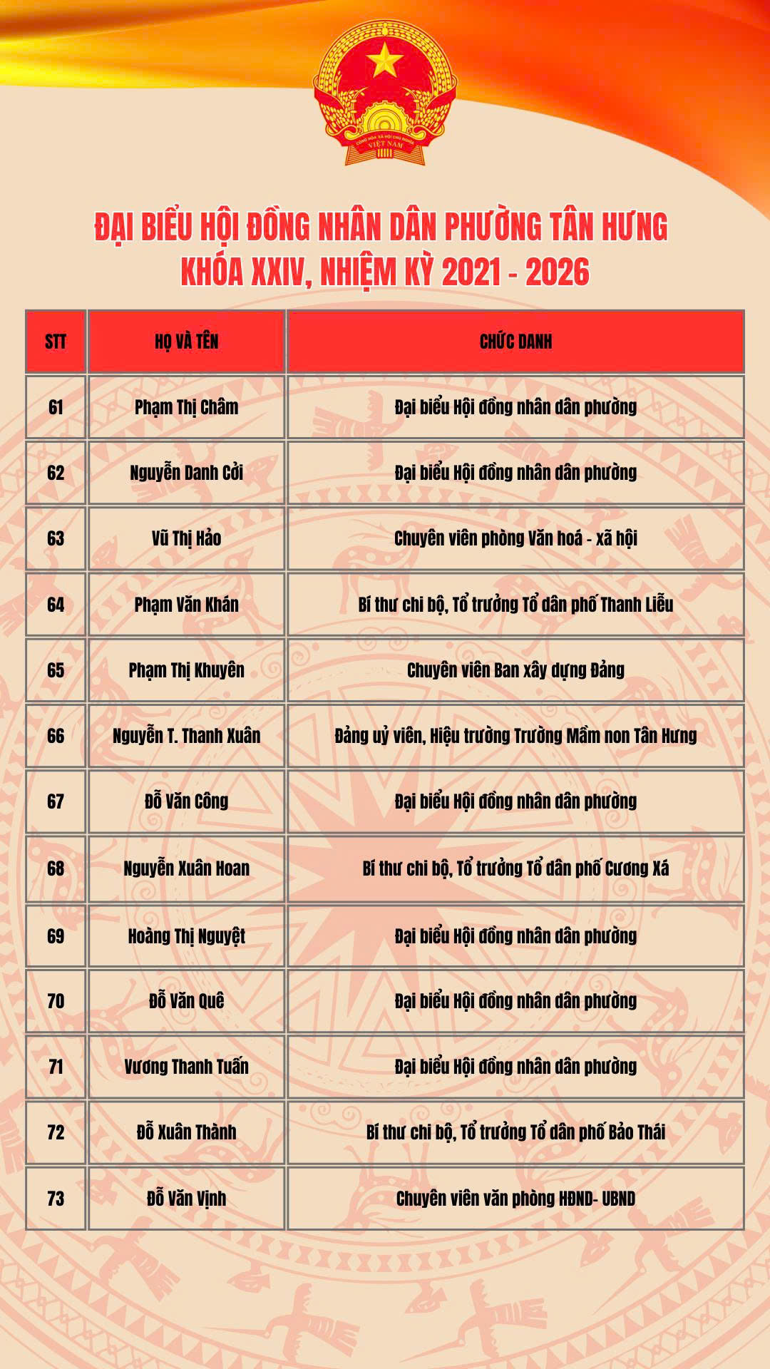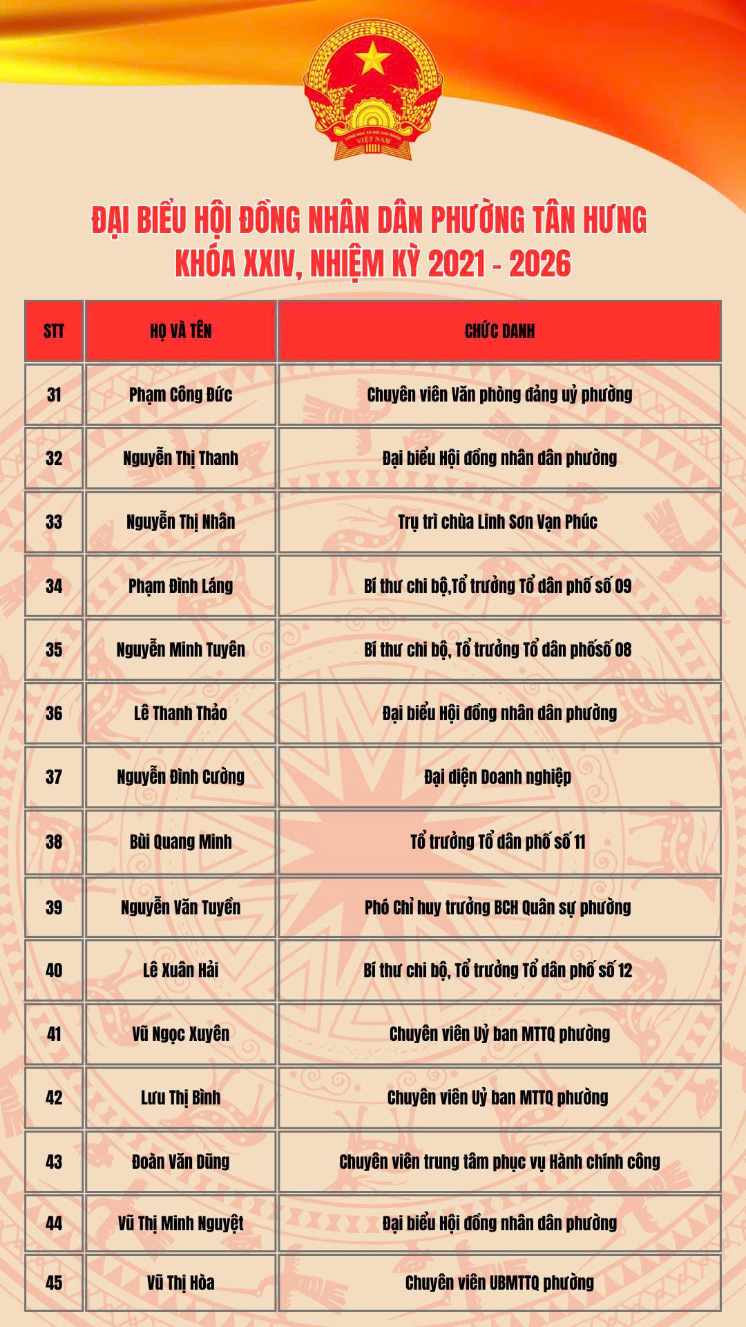 Thường trực Hội đồng nhân dân phường Tân Hưng nhiệm kỳ 2021-2026
