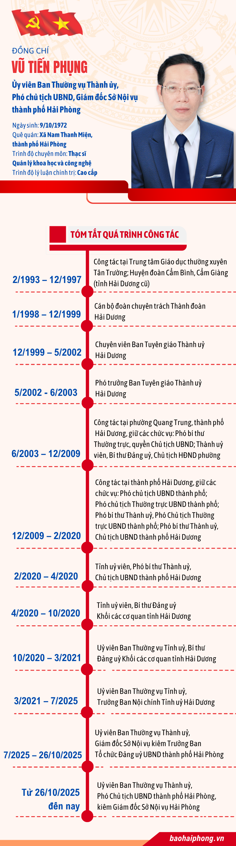 QUÁ TRÌNH CÔNG TÁC CỦA PHÓ CHỦ TỊCH UBND THÀNH PHỐ HẢI PHÒNG - VŨ TIẾN PHỤNG