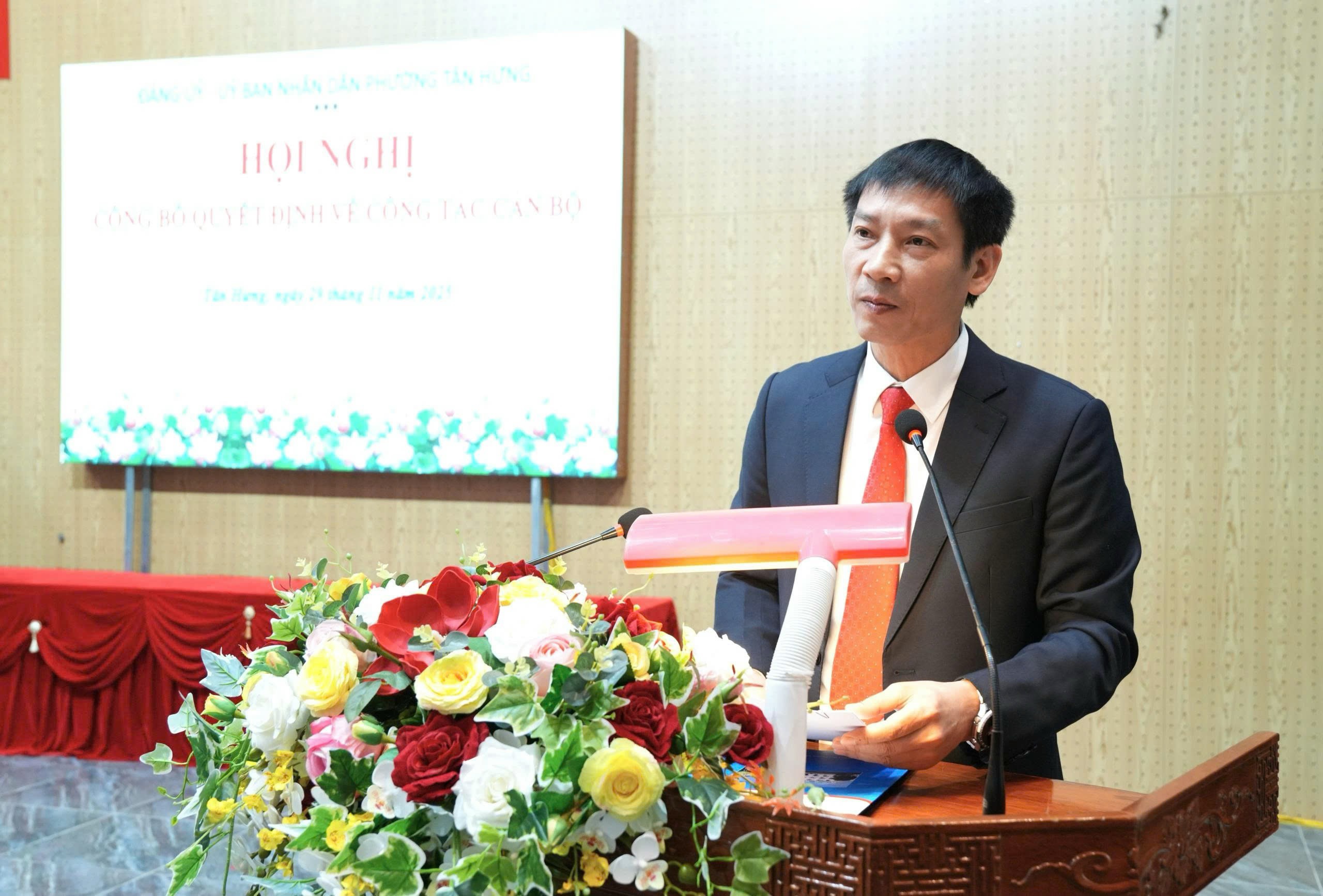 Phát biểu tại hội nghị, đồng chí Bí thư Đảng ủy Nguyễn Trường Thắng chúc mừng và động viên các đồng chí được điều động, bổ nhiệm đồng thời đề nghị trên cương vị công tác mới, các đồng chí tiếp tục phát huy tinh thần trách nhiệm, đoàn kết, nỗ lực hoàn thành tốt nhiệm vụ, góp phần xây dựng đơn vị nói tiêng và phường Tân Hưng nói chung ngày càng phát triển vững mạnh.