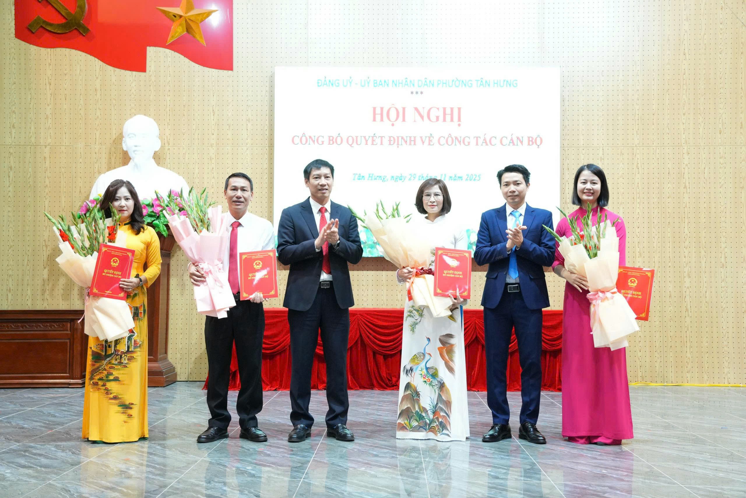 Sáng 29/11, Đảng ủy, UBND phường Tân Hưng tổ chức Hội nghị công bố các quyết định về công tác cán bộ đối với một số cán bộ, quản lý trên địa bàn phường.