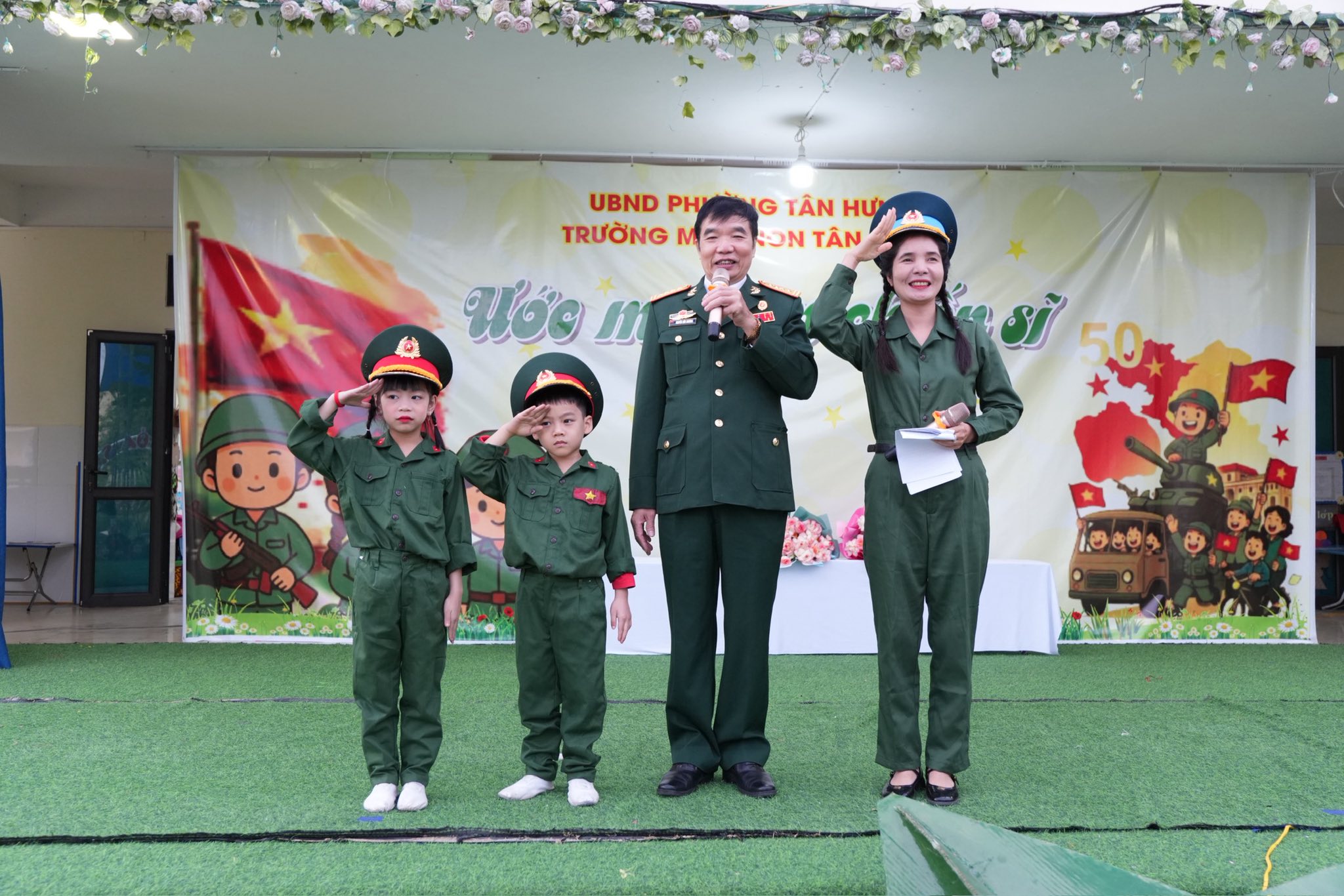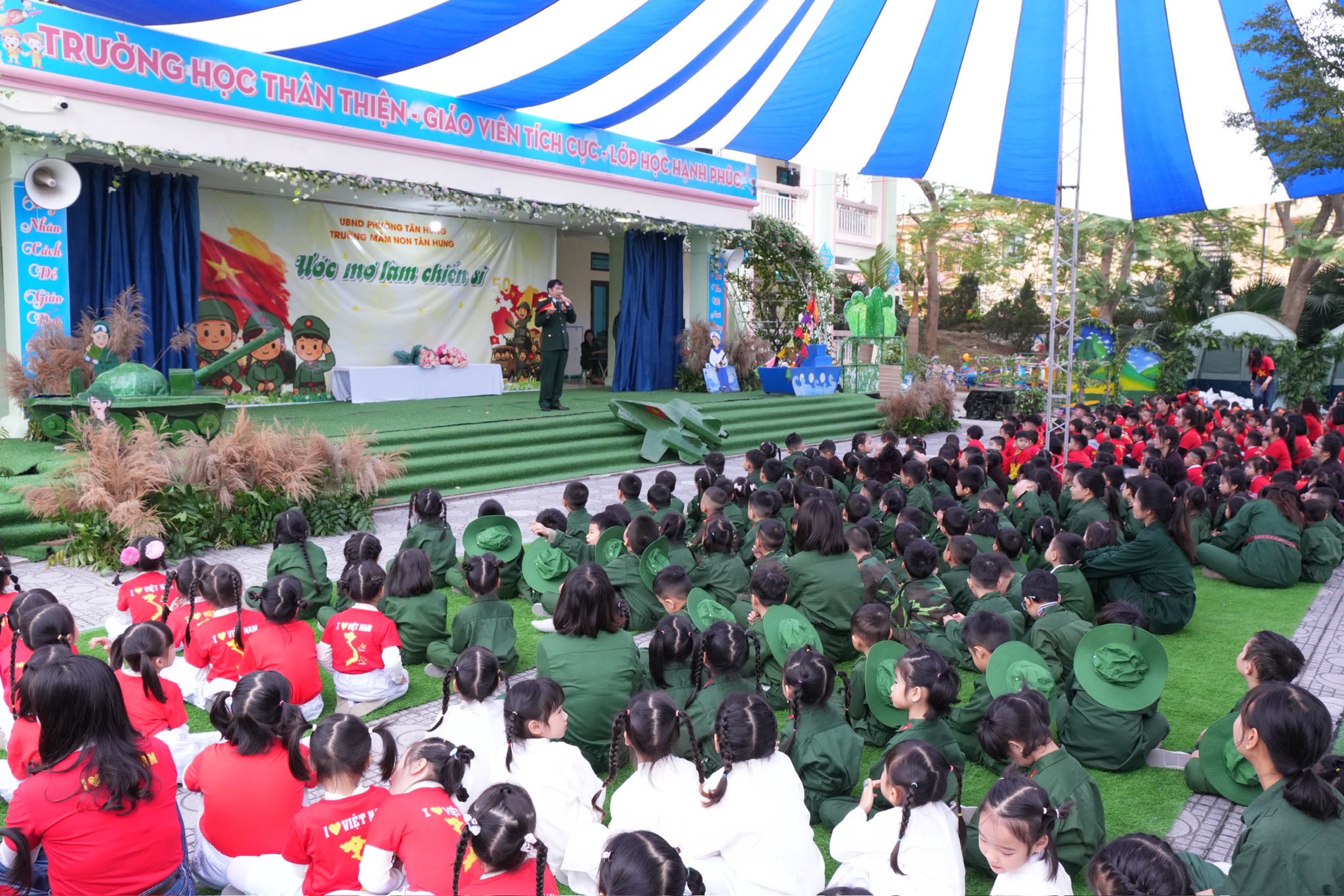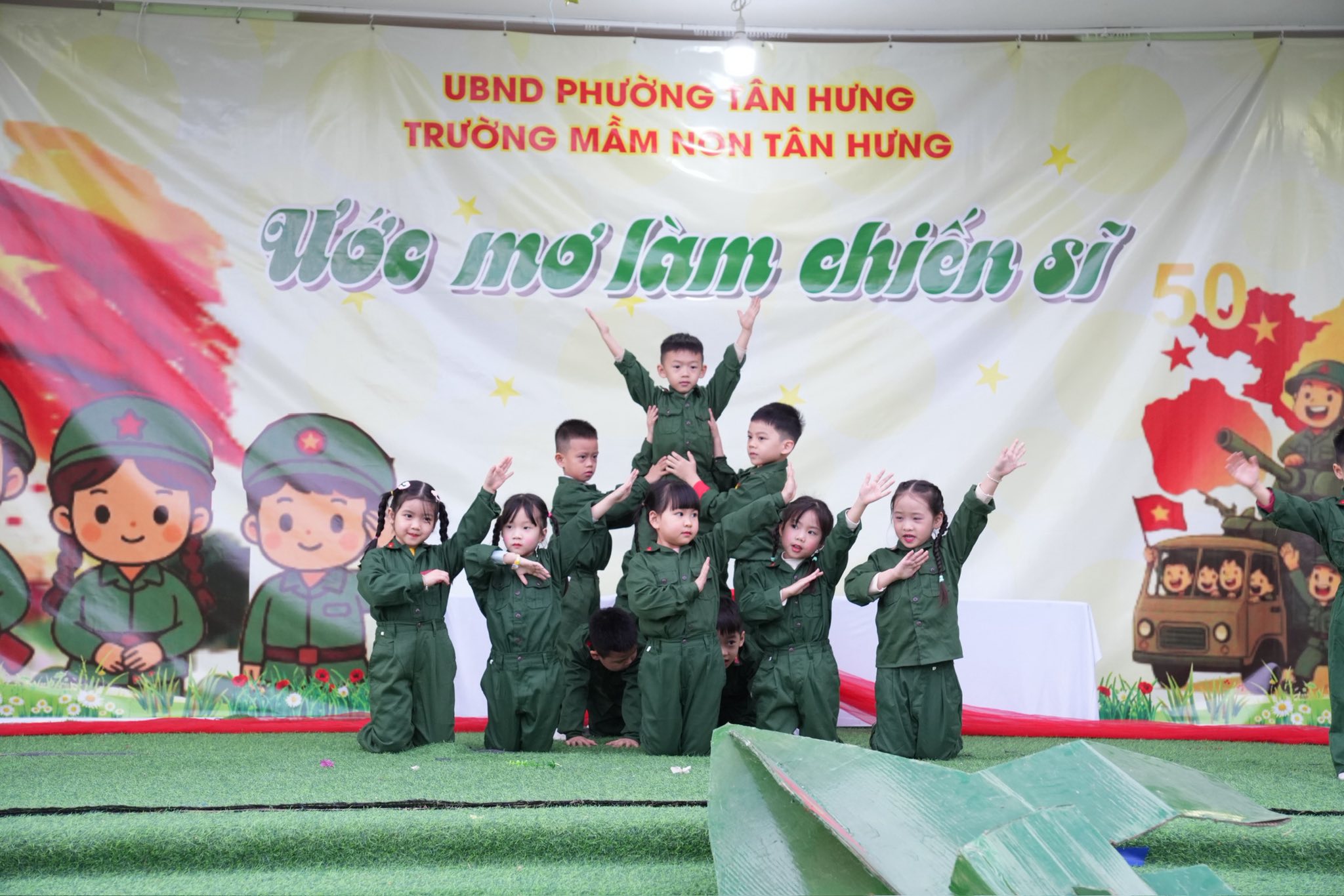 Nhằm thiết thực chào mừng kỷ niệm 81 năm Ngày thành lập Quân đội Nhân dân Việt Nam (22/12/1944 – 22/12/2025), đồng thời tôn vinh, tri ân các anh hùng liệt sĩ, các thế hệ cán bộ, chiến sĩ Quân đội nhân dân Việt Nam đã cống hiến, hy sinh vì sự nghiệp xây dựng và bảo vệ Tổ quốc, sáng 16/12, Trường Mầm non Tân Hưng tổ chức Hội thi với chủ đề “Ước mơ làm chiến sĩ”.