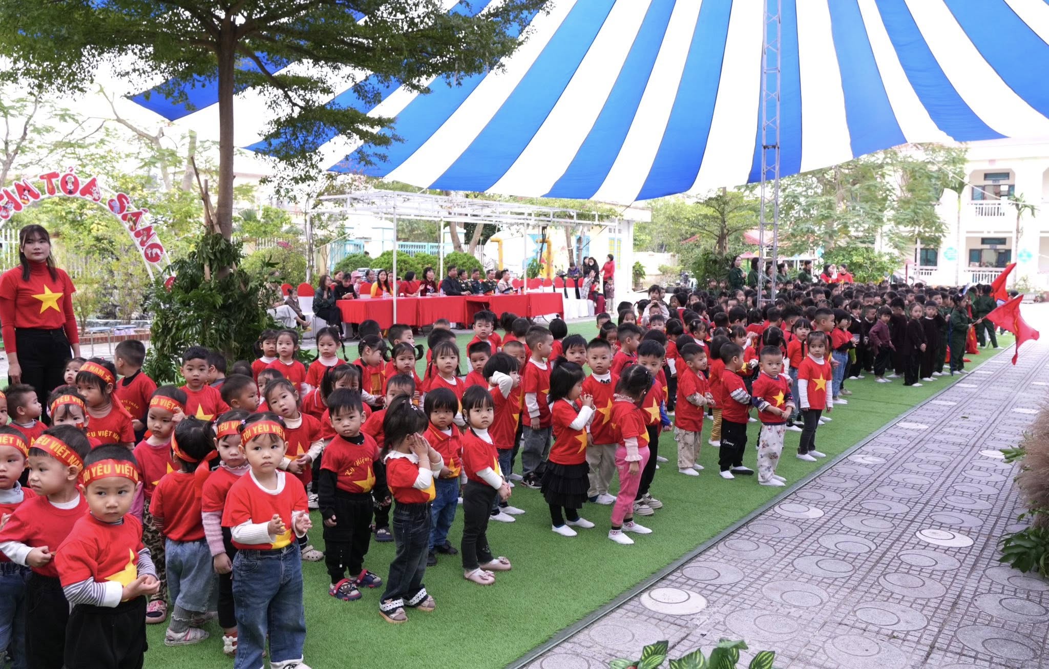 Tham dự chương trình có đồng chí Đỗ Văn Quyết, Ủy viên Ban Thường vụ, Chỉ huy trưởng Ban Chỉ huy Quân sự phường; đồng chí Nguyễn Hữu Chương, Phó Chủ tịch Ủy ban MTTQ Việt Nam phường, Chủ tịch Hội Cựu chiến binh phường; đồng chí Nguyễn Thị Thanh Xuân, Bí thư Chi bộ, Hiệu trưởng nhà trường, cùng toàn thể cán bộ, giáo viên, phụ huynh và các bé trong toàn trường.
