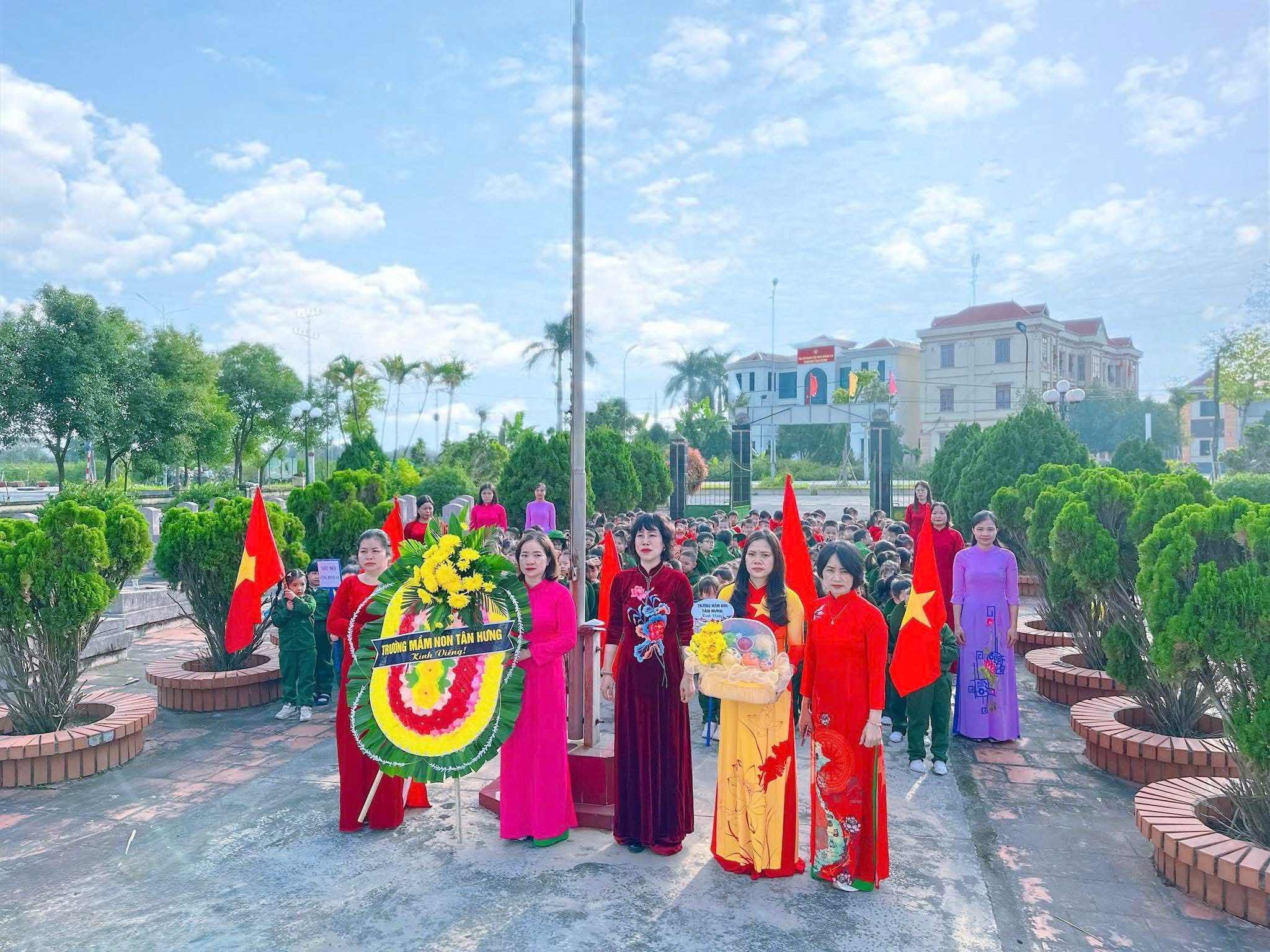 Trước đó, ngày 15/12, cô và trò Trường Mầm non Tân Hưng đã tổ chức hoạt động trải nghiệm ý nghĩa “Bước chân người lính”, hành quân về Đài nghĩa trang liệt sĩ Phường Tân Hưng để dâng hương, tưởng niệm và bày tỏ lòng tri ân sâu sắc tới các anh hùng liệt sĩ – những người đã hy sinh vì độc lập, tự do và hòa bình của Tổ quốc.