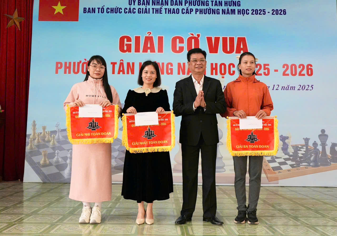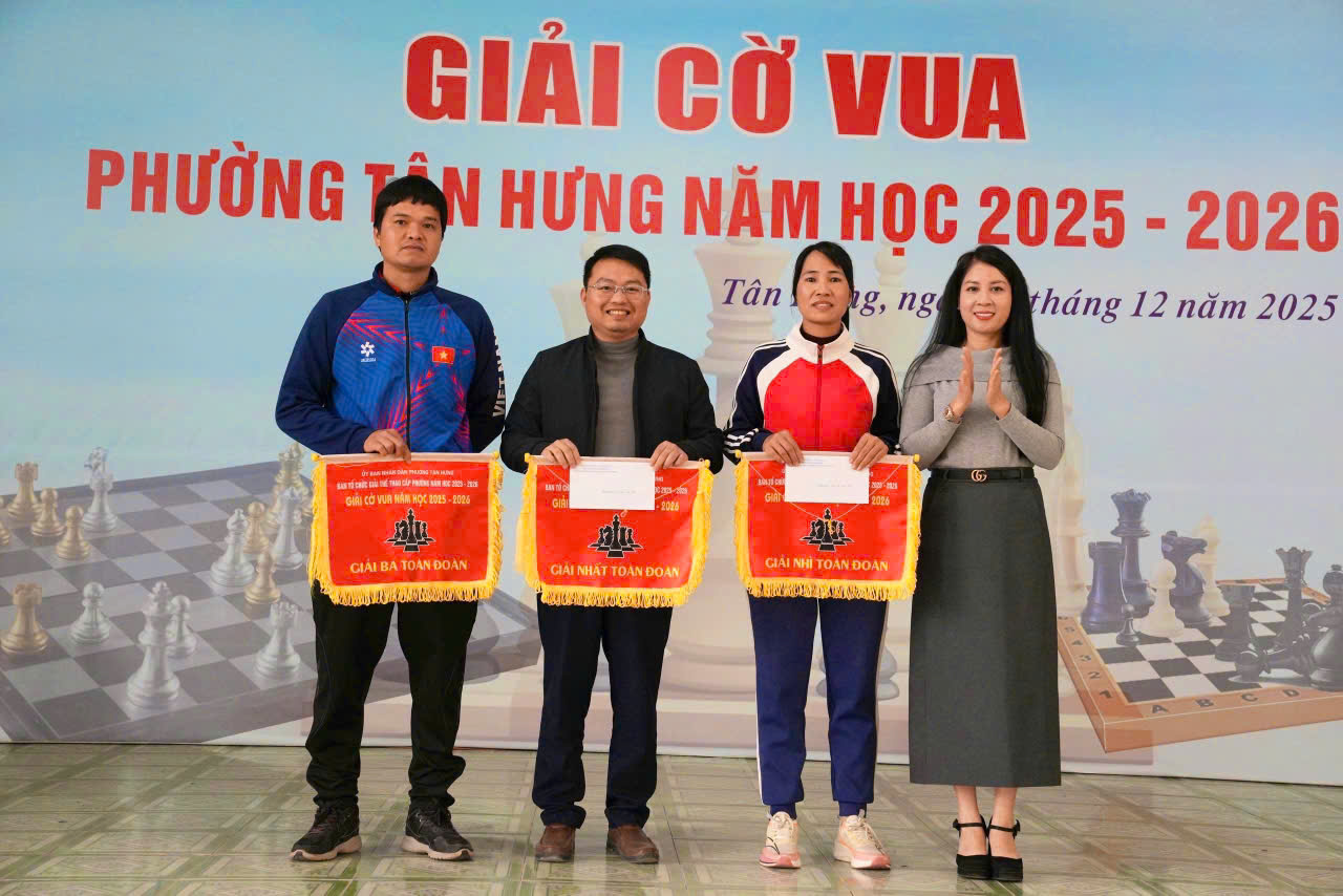 Kết thúc giải đấu, Ban Tổ chức đã trao 40 giải thưởng trong đó giải nhất khối Tiểu học được trao cho em Nguyễn Bá Đăng Khôi – học sinh Trường Tiểu học Hải Tân; Nguyễn Việt Long – Trường Tiểu học Hải Tân; Nguyễn Thị Vân Anh – Trường Tiểu học Ngọc Sơn và Nguyễn Nhật Mai – Trường Tiểu học Sao Mai. Giải nhất khối THCS trao cho  Đặng Việt Hoàng – Trường THCS Ngọc Sơn, Nguyễn Quang Minh – Trường THCS Hải Tân, Phạm Trang Anh – Trường THCS Hải Tân, Nguyễn Ngọc Bảo Trang – Trường THCS Hải Tân. Ban Tổ chức cũng trao giải toàn đoàn. Khối Tiểu học giải nhất thuộc về Trường Tiểu học Hải Tân, giải nhì Trường Tiểu học Ngọc Sơn, giải ba Trường Tiểu học Tân Hưng. Khối THCS giải nhất thuộc về Trường THCS Hải Tân, giải nhì Trường THCS Ngọc Sơn và giải ba thuộc về THCS Tân Hưng. Ngoài ra Ban Tổ chức cũng trao giải cho 6 thầy cô giáo đã có cống hiến đào tạo vận động viên đạt thành tích cao trong giải cờ vua phường Tân Hưng năm học 2025-2026.