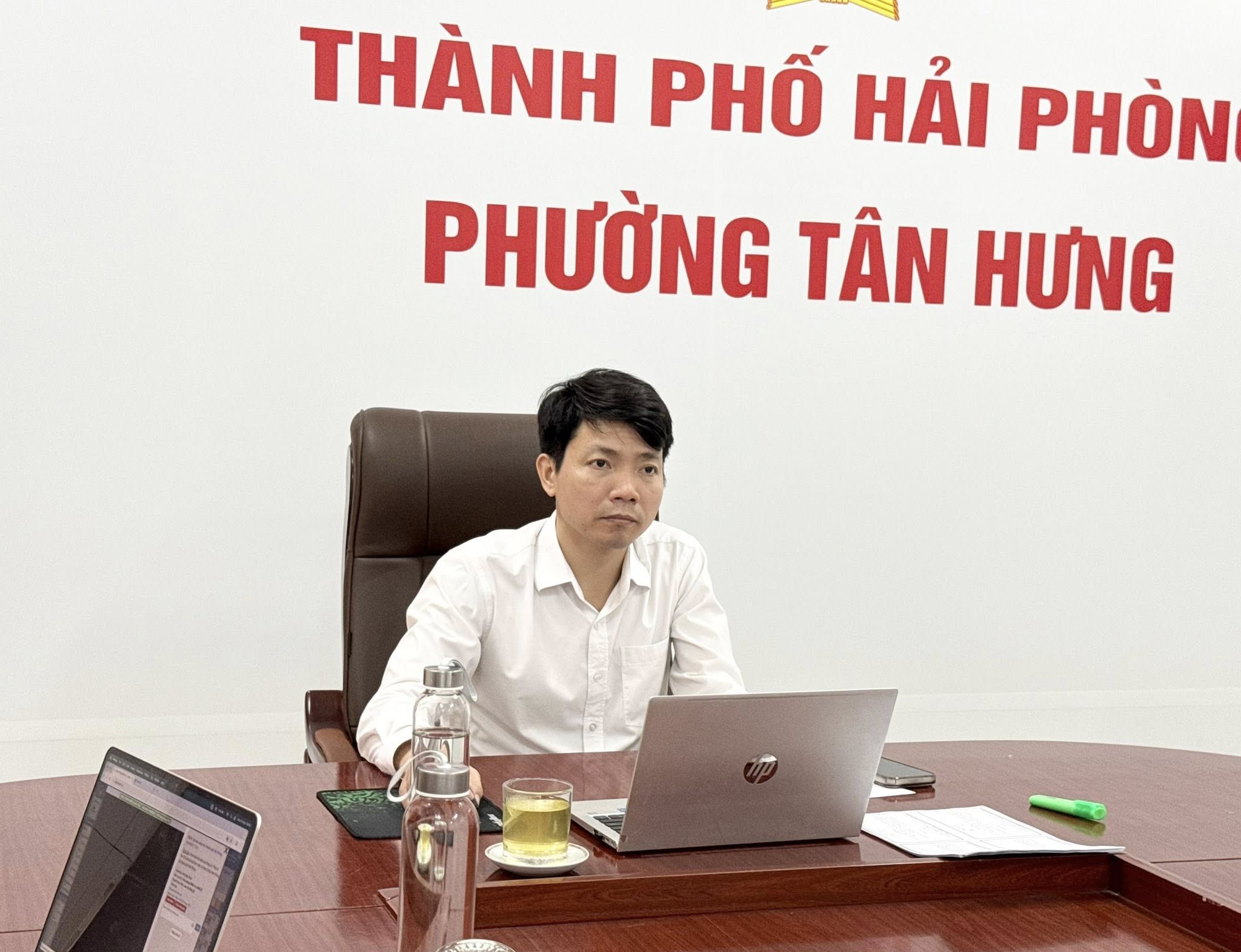 Sáng 15/4, Phó Chủ tịch UBND thành phố Hải Phòng Lê Trung Kiên chủ trì phiên họp trực tiếp kết hợp trực tuyến với điểm cầu các xã, phường, đặc khu nhằm nghe báo cáo tiến độ thực hiện kế hoạch kịch bản giải ngân kế hoạch vốn đầu tư công, đồng thời đẩy nhanh tiến độ giải phóng mặt bằng các dự án trên địa bàn thành phố năm 2026. Tại điểm cầu phường Tân Hưng, đồng chí Vũ Công Thản - Chủ tịch UBND phường chủ trì.