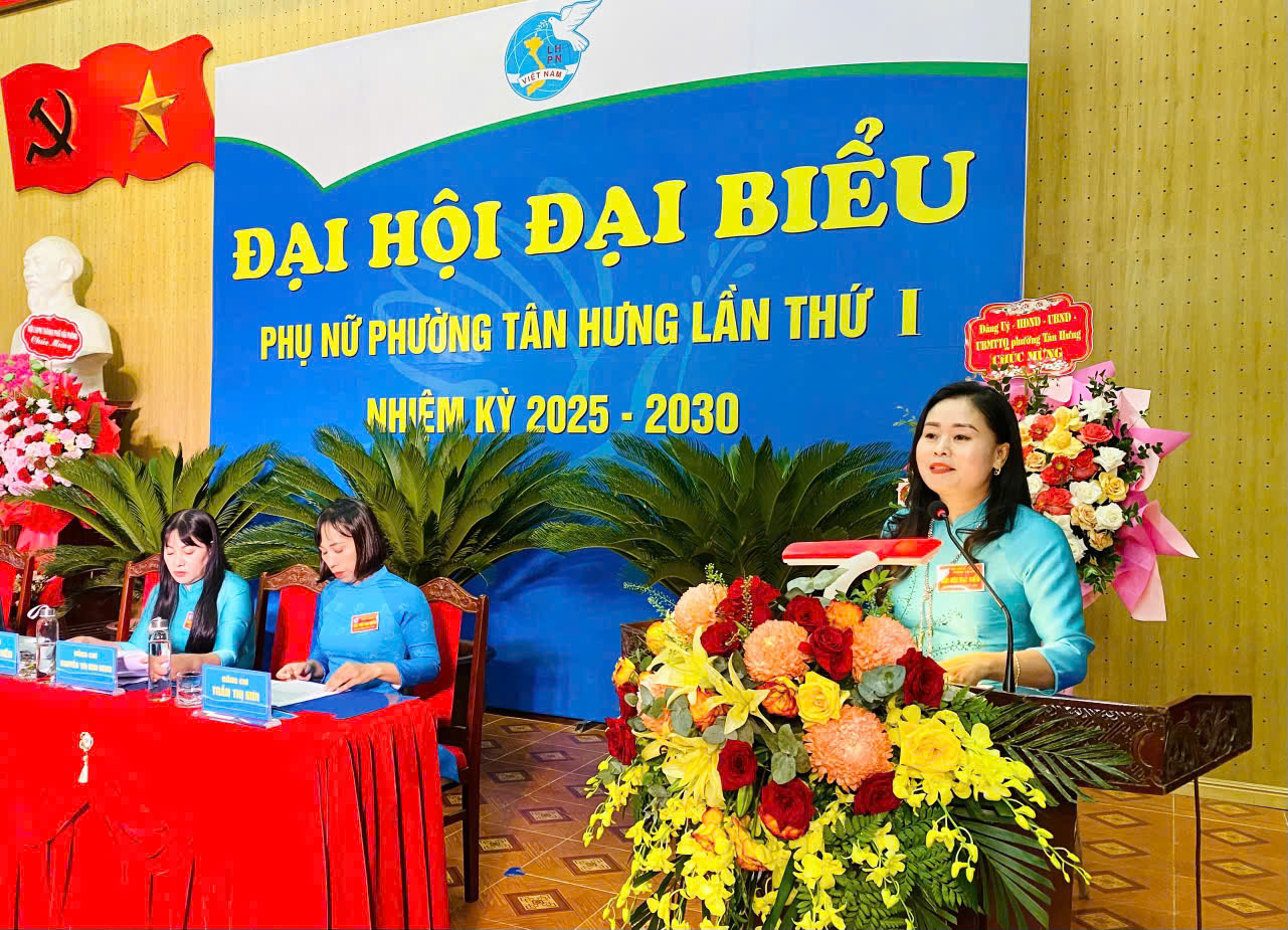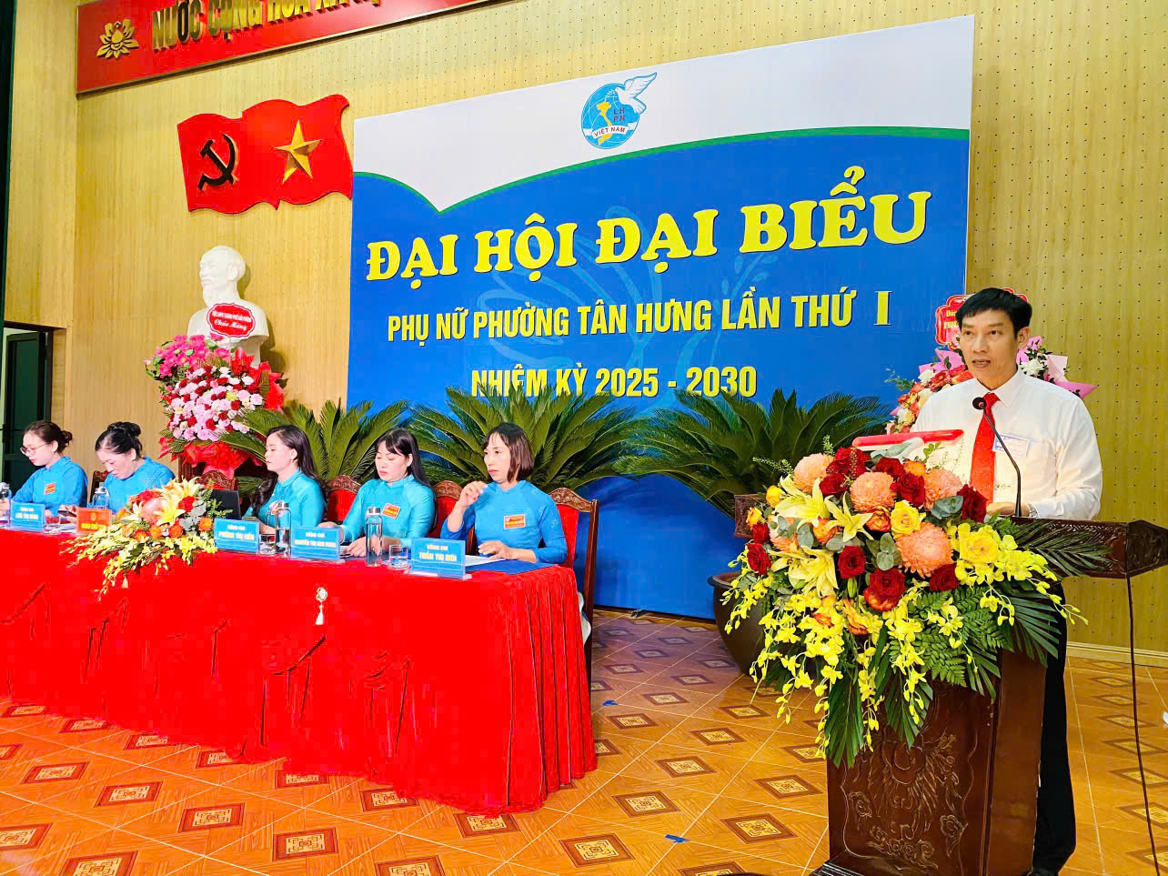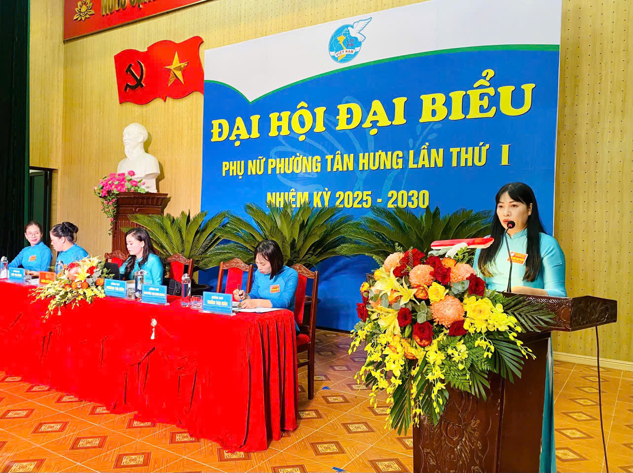 Chiều 15/10, Ban Chấp hành Hội Liên hiệp Phụ nữ (LHPN) phường Tân Hưng tổ chức Đại hội đại biểu phụ nữ phường lần thứ I, nhiệm kỳ 2025 - 2030. Dự Đại hội có các đồng chí: Đỗ Thị Thanh – Uỷ viên Ban Thường vụ, Phó Trưởng Ban công tác Phụ nữ thành phố; Nguyễn Trường Thắng – Bí thư Đảng ủy, Chủ tịch HĐND; Hoàng Hữu Hưng – Phó Bí thư Thường trực Đảng ủy; Vũ Công Thản – Phó Bí thư, Chủ tịch UBND; Phùng Thị Nền – Chủ tịch Ủy ban MTTQ Việt Nam phường; các đồng chí Uỷ viên BTV Đảng uỷ; Thường trực HĐND, lãnh đạo UBND, Uỷ ban MTTQ Việt Nam phường; các tổ chức chính trị - xã hội, các phòng, ban ngành, cơ quan, đơn vị của phường; các đồng chí nguyên lãnh đạo Hội LHPN các thời kỳ, lãnh đạo Ngân hàng CSXH khu vực Hải Dương, Bí thư chi bộ, Tổ trưởng các Tổ dân phố và 90 đại biểu ưu tú, tiêu biểu đến từ các chi hội đại diện cho hơn 4.000 cán bộ, hội viên, phụ nữ toàn phường.