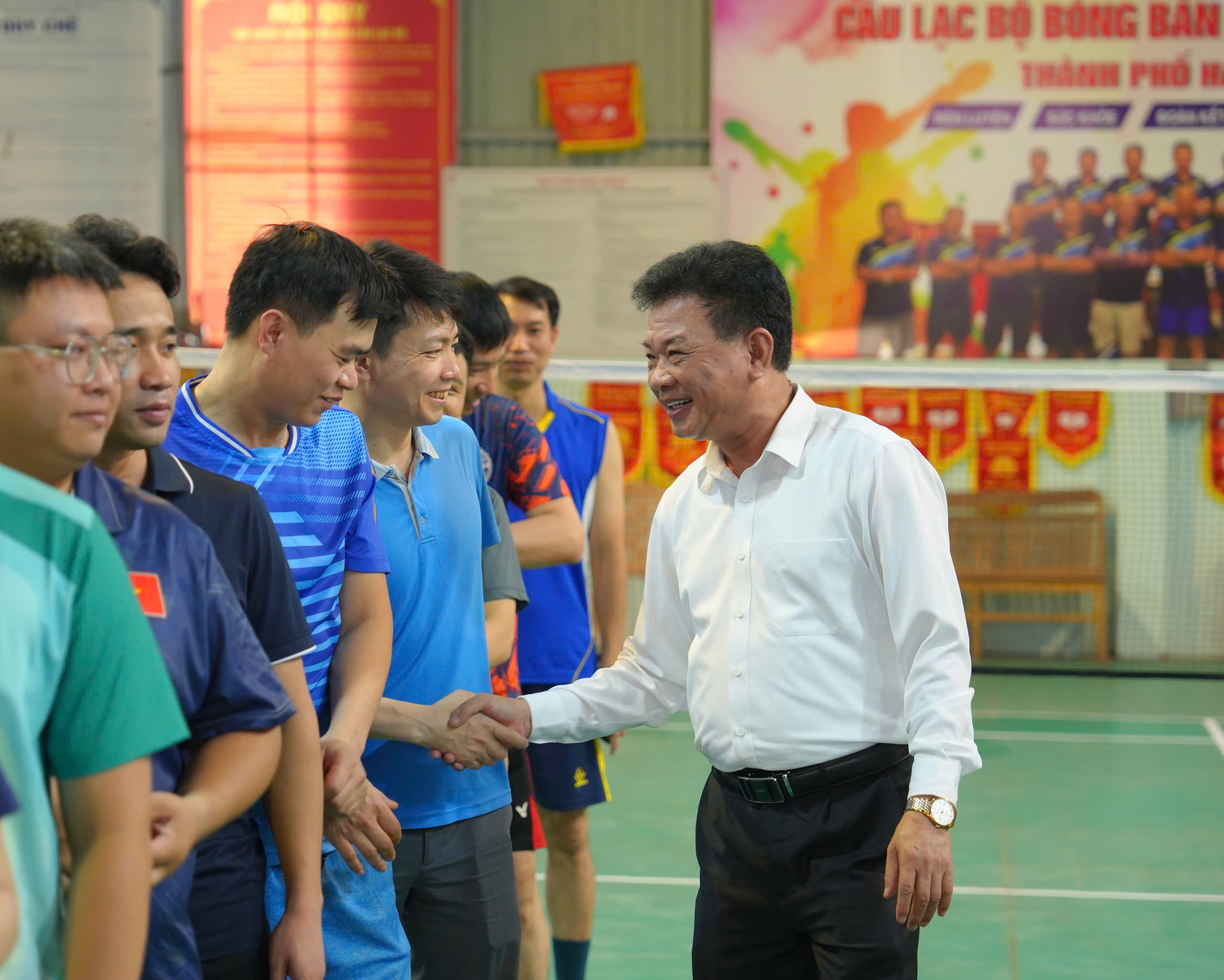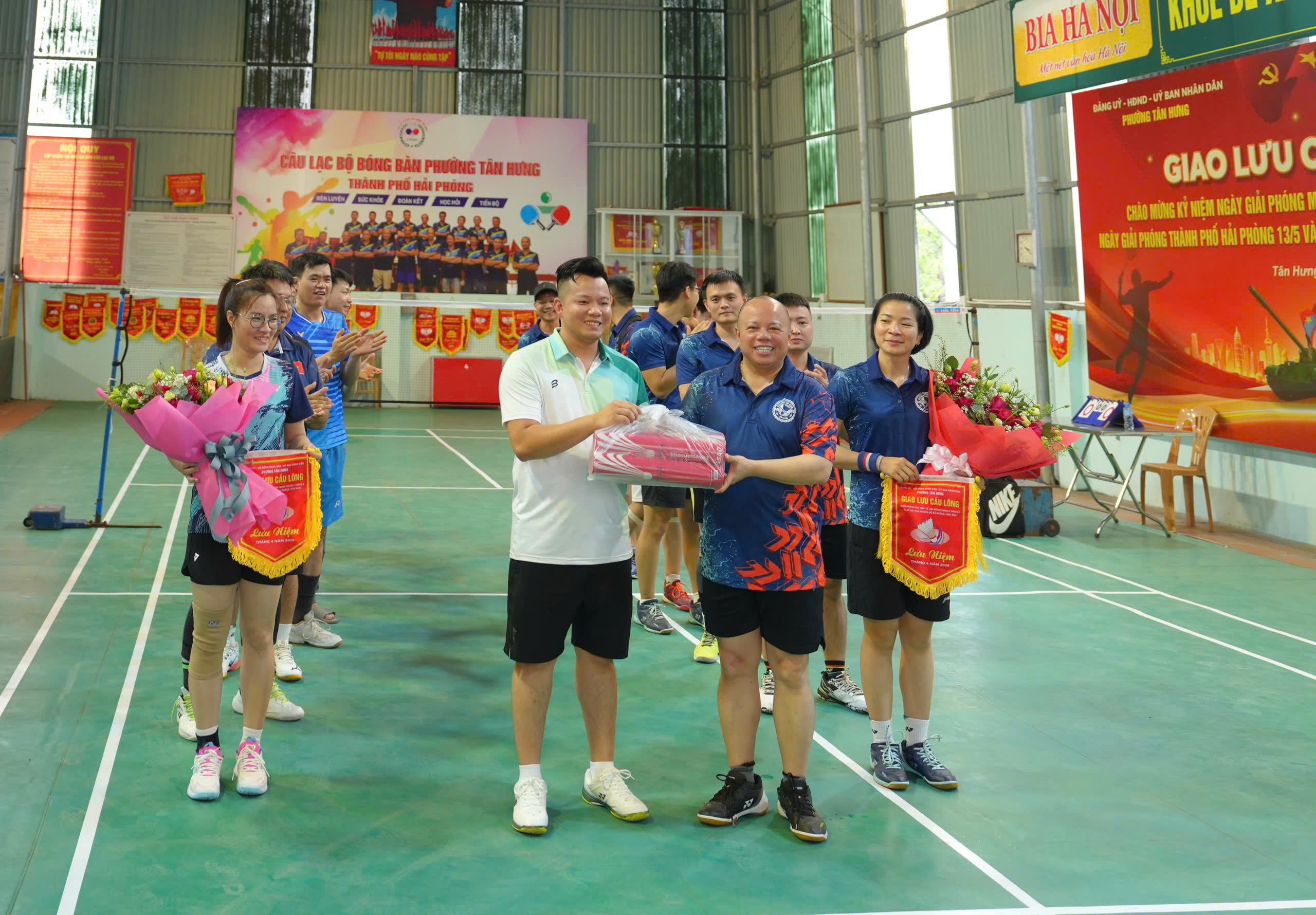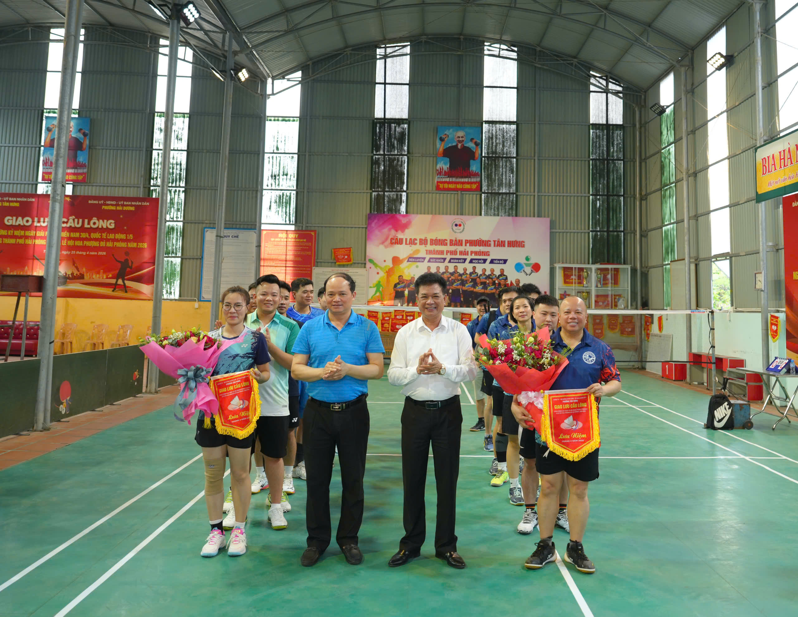 Các đồng chí lãnh đạo Đảng ủy, UBND hai phường đã tham dự phần khai mạc, trao cờ lưu niệm và tặng hoa chúc mừng các vận động viên đến từ CLB Cầu lông Thành Đông - Hải Dương cùng các tay vợt đại diện phường Tân Hưng.