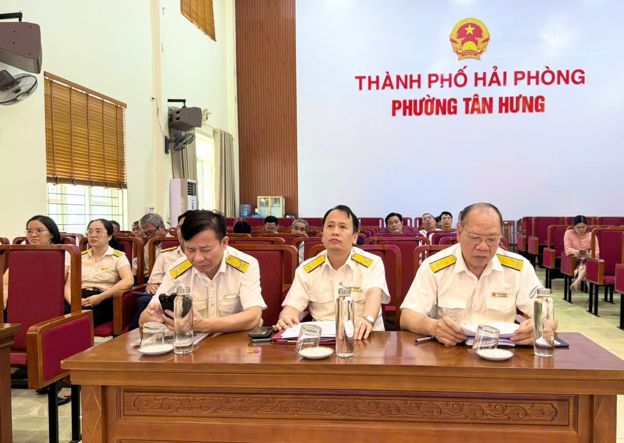 Tham dự hội nghị về phía phường có đồng chí Nguyễn Tiến Dương – Phó Chủ tịch UBND; chuyên viên phòng Kinh tế - Hạ tầng và Đô thị phường cùng Bí thư Chi bộ, Tổ trưởng các Tổ dân phố trên địa bàn. Về phía đơn vị Thuế có đại diện lãnh đạo Thuế cơ sở 9 thành phố Hải Phòng cùng các cán bộ liên quan.