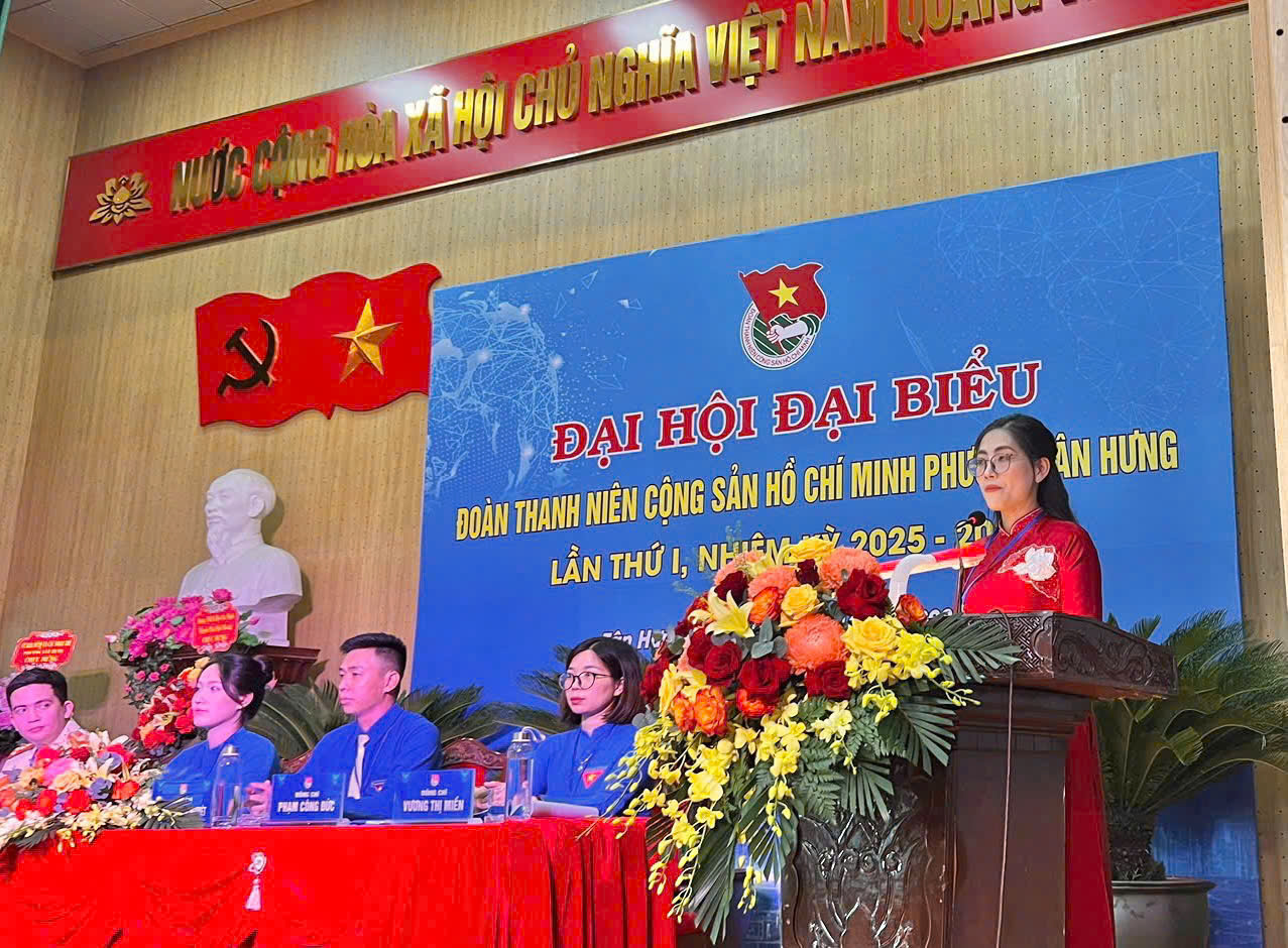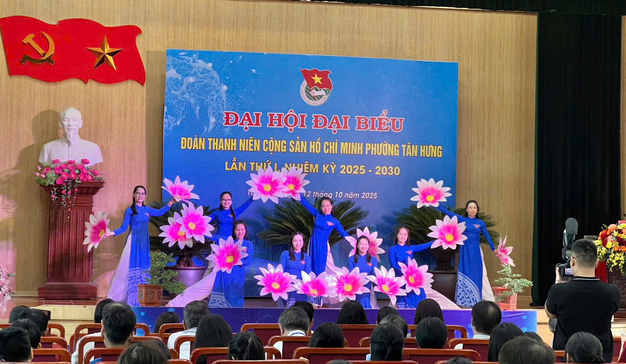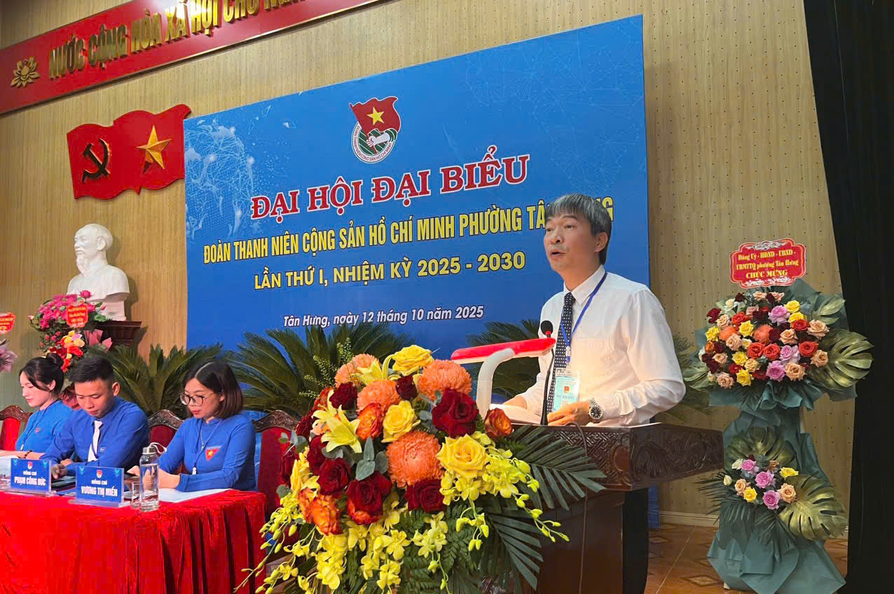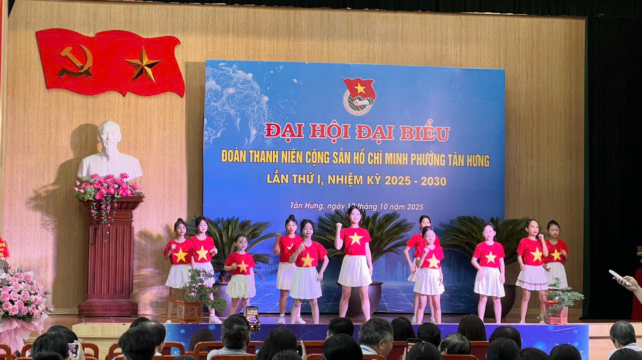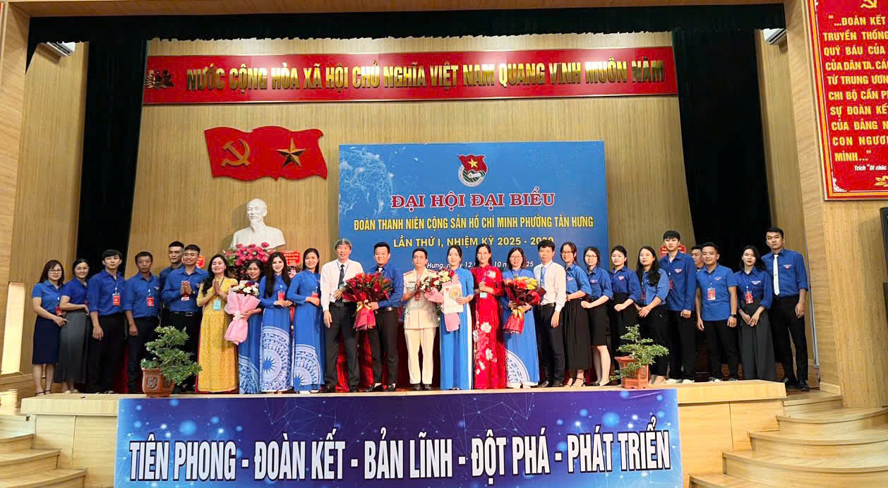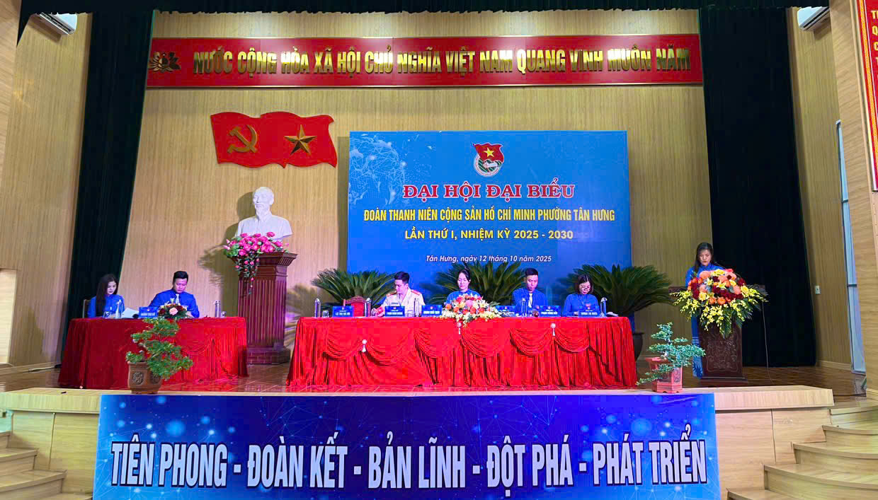 Chiều 12/10, Đoàn phường Tân Hưng long trọng tổ chức Đại hội Đại biểu Đoàn thanh niên cộng sản Hồ Chí Minh phường lần thứ nhất, nhiệm kỳ 2025-2030. Dự đại hội về phía đại biểu thành phố có các đồng chí: Nguyễn Thị Thủy, Phó Chủ tịch Ủy ban MTTQ Việt Nam thành phố, Bí thư Thành đoàn, Chủ tịch Hội Liên hiệp thanh niên Việt Nam thành phố; Nguyễn Thị Yến, Ủy viên Ban Chấp hành Thành đoàn, Phó Trưởng Ban Công tác Đoàn và thanh thiếu nhi cơ quan Ủy ban MTTQ Việt Nam thành phố. Về phía phường có đồng chí: Hoàng Hữu Hưng, Phó Bí thư Thường trực Đảng ủy; Vũ Công Thản, Phó Bí thư Đảng uỷ, Chủ tịch UBND; Phùng Thị Nền, Chủ tịch Uỷ ban MTTQ Việt Nam phường; Các đồng chí Ủy viên Ban Thường vụ, Ủy viên Ban Chấp hành Đảng bộ phường, lãnh đạo các phòng, ban, ngành, đoàn thể; các đồng chí Bí thư các Chi, Đảng bộ trực thuộc phường cùng 123 đại biểu chính thức đại diện cho hơn 1000 cán bộ, đoàn viên tiêu biểu trong toàn phường.