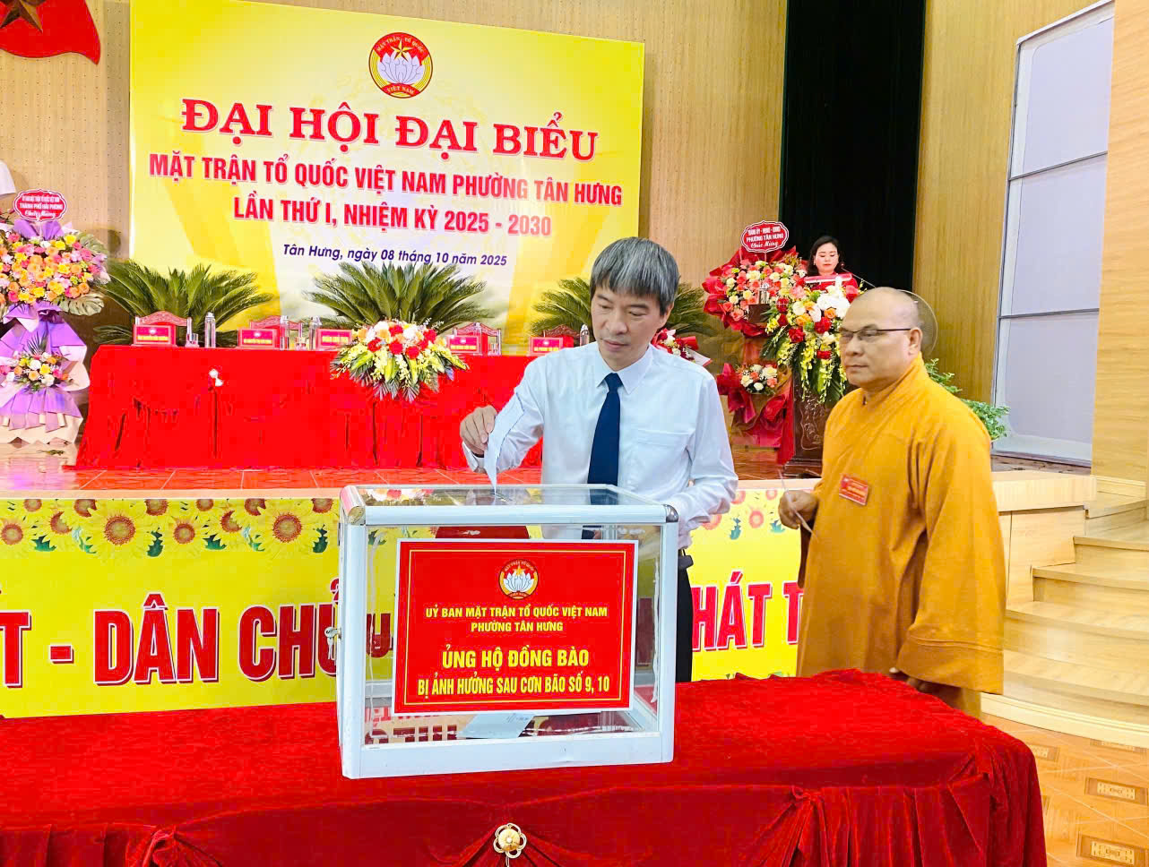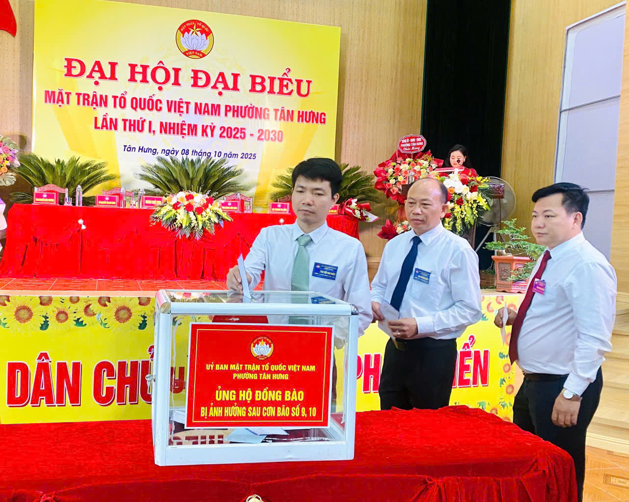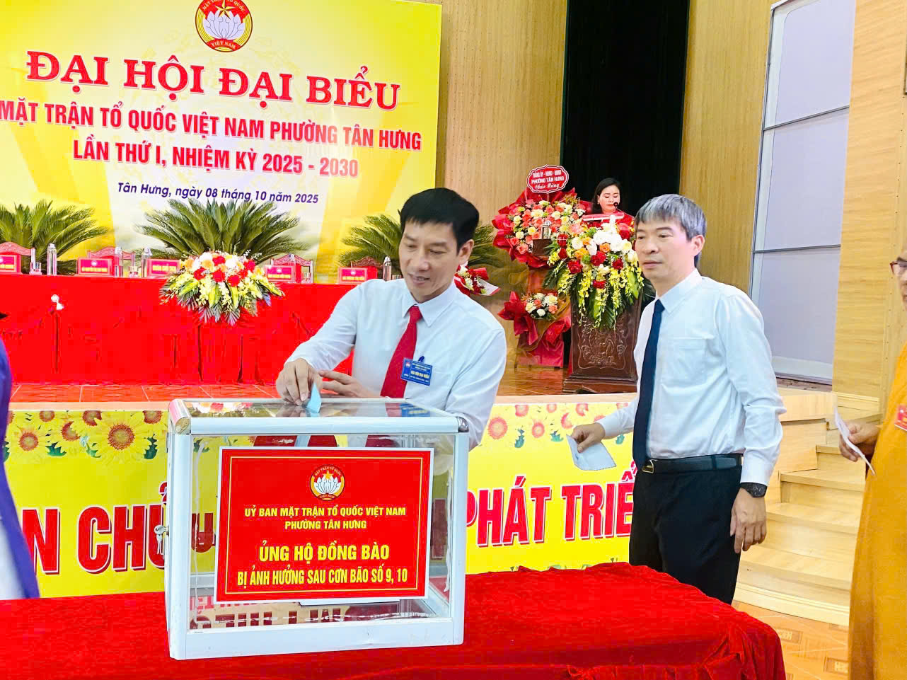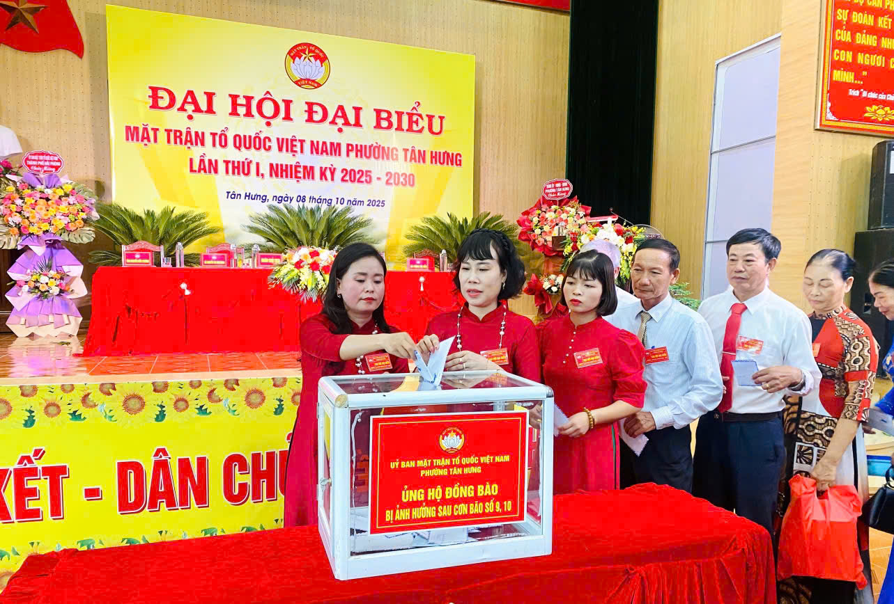 Chiều 8/10, Ủy ban Mặt trận Tổ quốc (MTTQ) Việt Nam phường Tân Hưng long trọng tổ chức Đại hội đại biểu MTTQ Việt Nam phường lần thứ nhất, nhiệm kỳ 2025 - 2030. Tham dự Đại hội về phía đại biểu thành phố có đồng chí Trương Thị Huyền - Chuyên viên Ban Dân chủ, giám sát và phản biện xã hội UBMTTQ Việt Nam thành phố. Về phía phường có sự hiện diện của các đồng chí: Nguyễn Trường Thắng - Bí thư Đảng uỷ, Chủ tịch HĐND; Hoàng Hữu Hưng - Phó Bí thư Thường trực; Vũ Công Thản - Phó Bí thư, Chủ tịch UBND cùng đại diện lãnh đạo các ban, ngành, đoàn thể và 114 đại biểu chính thức đại diện cho các cá nhân tiêu biểu trên địa bàn phường.