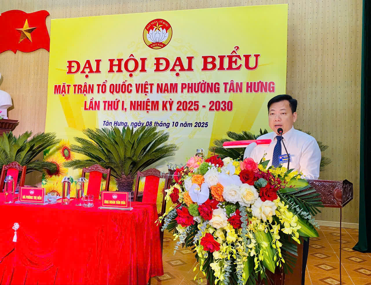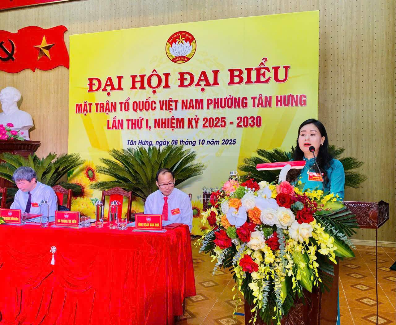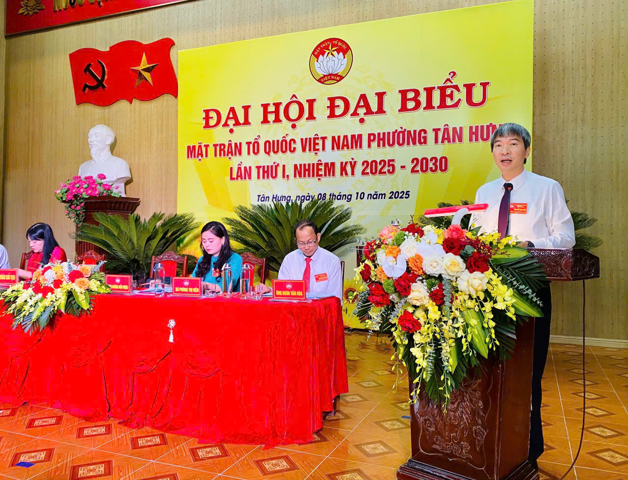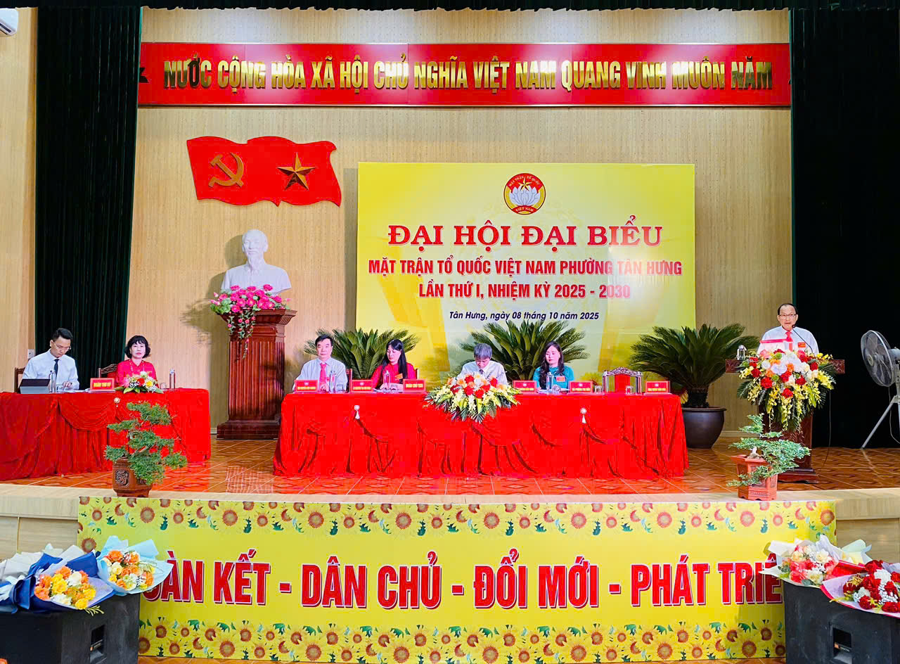 Sáng 8/10, Ủy ban Mặt trận Tổ quốc (MTTQ) Việt Nam phường Tân Hưng tổ chức phiên trù bị Đại hội đại biểu MTTQ Việt Nam phường lần thứ I, nhiệm kỳ 2025 - 2030. Đến dự đại hội có đồng chí Hoàng Hữu Hưng – Phó Bí thư Thường trực Đảng ủy phường, các đồng chí trong Ban Thường trực MTTQ phường và 114 đại biểu chính thức đại diện cho khối đại đoàn kết toàn dân trên địa bàn phường.
