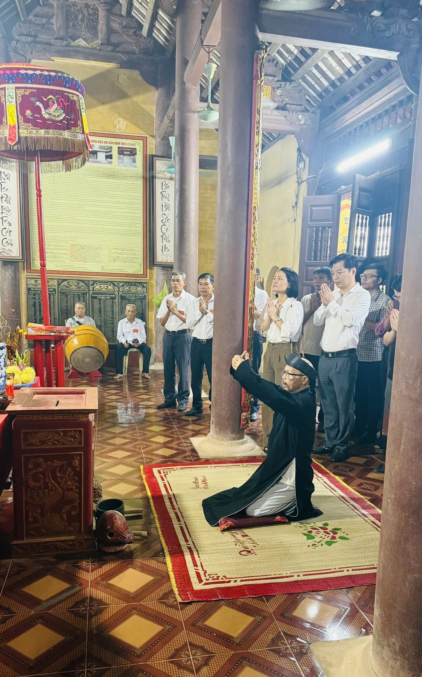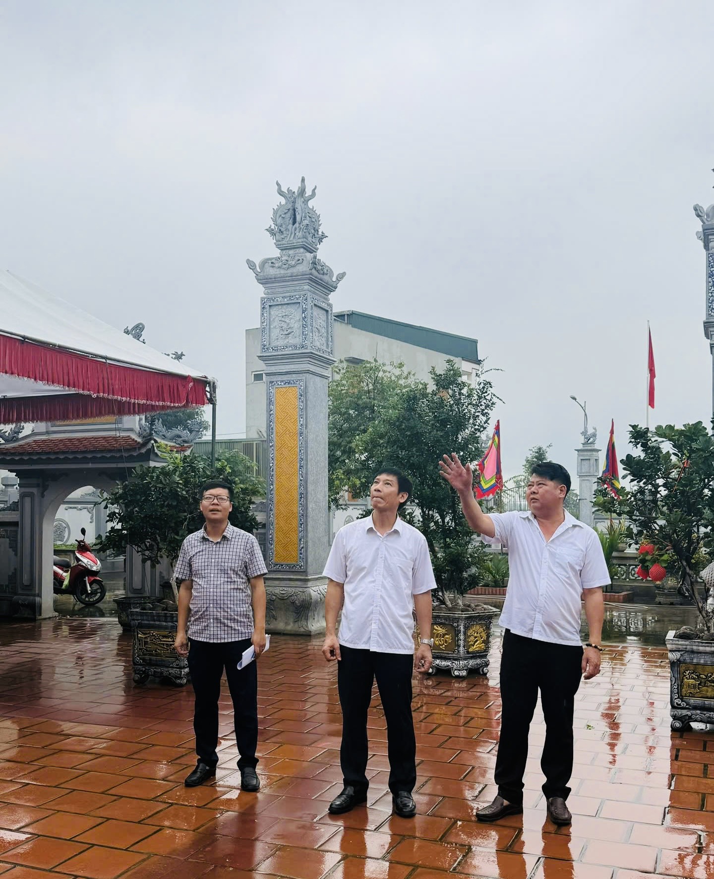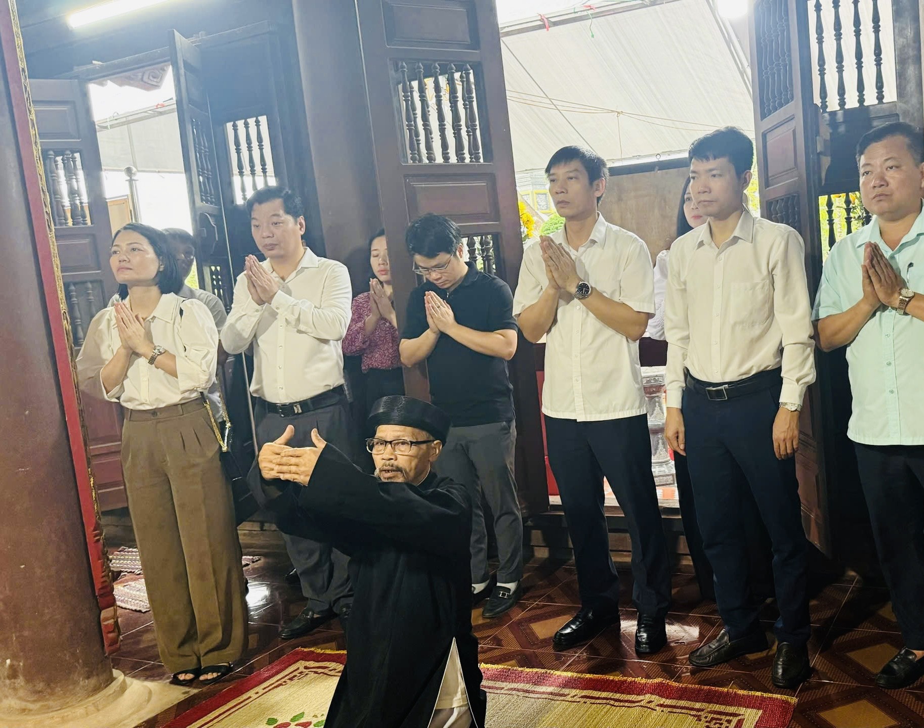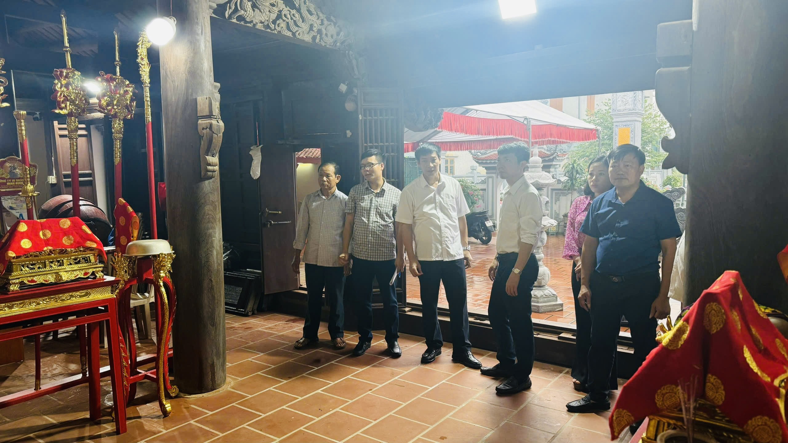 Ngay sau lễ dâng hương tại Miếu Thanh Liễu, đoàn cũng đi kiểm tra công tác chuẩn bị cho lễ Khánh thành công trình tu sửa cấp thiết di tích lịch sử- văn hóa cấp quốc gia đình Liễu Tràng.