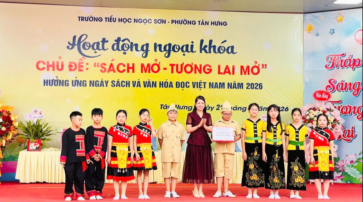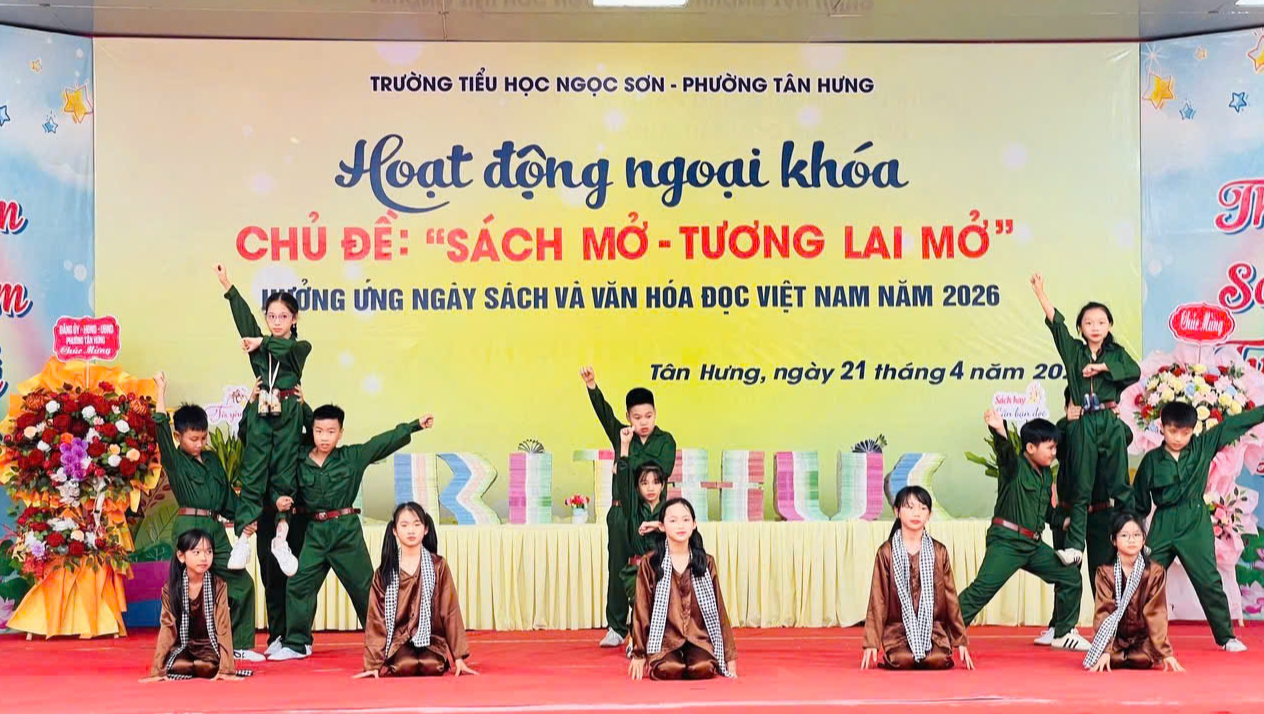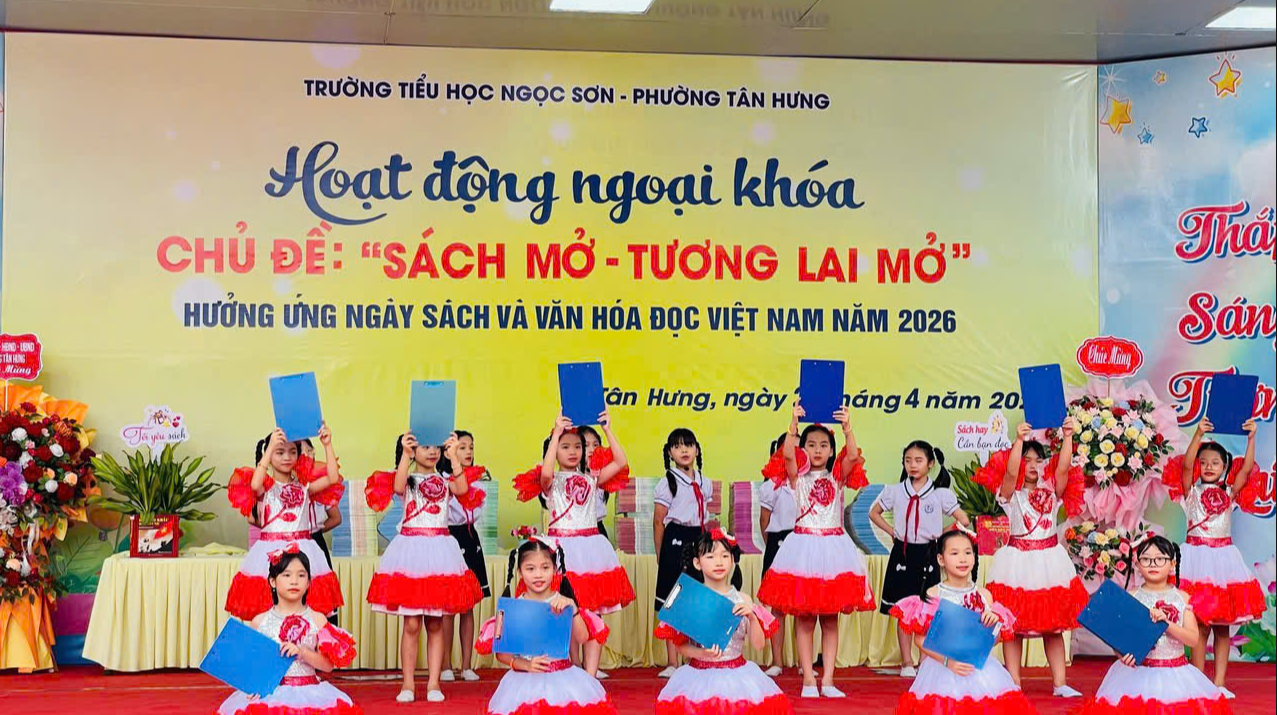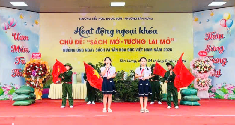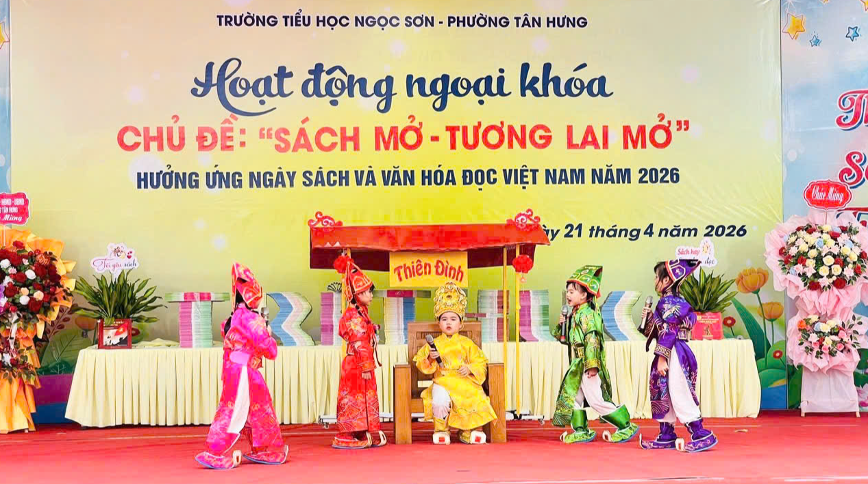 Chiều 21/4, Trường Tiểu học Ngọc Sơn tổ chức chương trình hoạt động ngoại khóa với chủ đề “Sách mở - Tương lai mở”. Đây là hoạt động nhằm hưởng ứng Ngày Sách và Văn hóa đọc Việt Nam năm 2026.